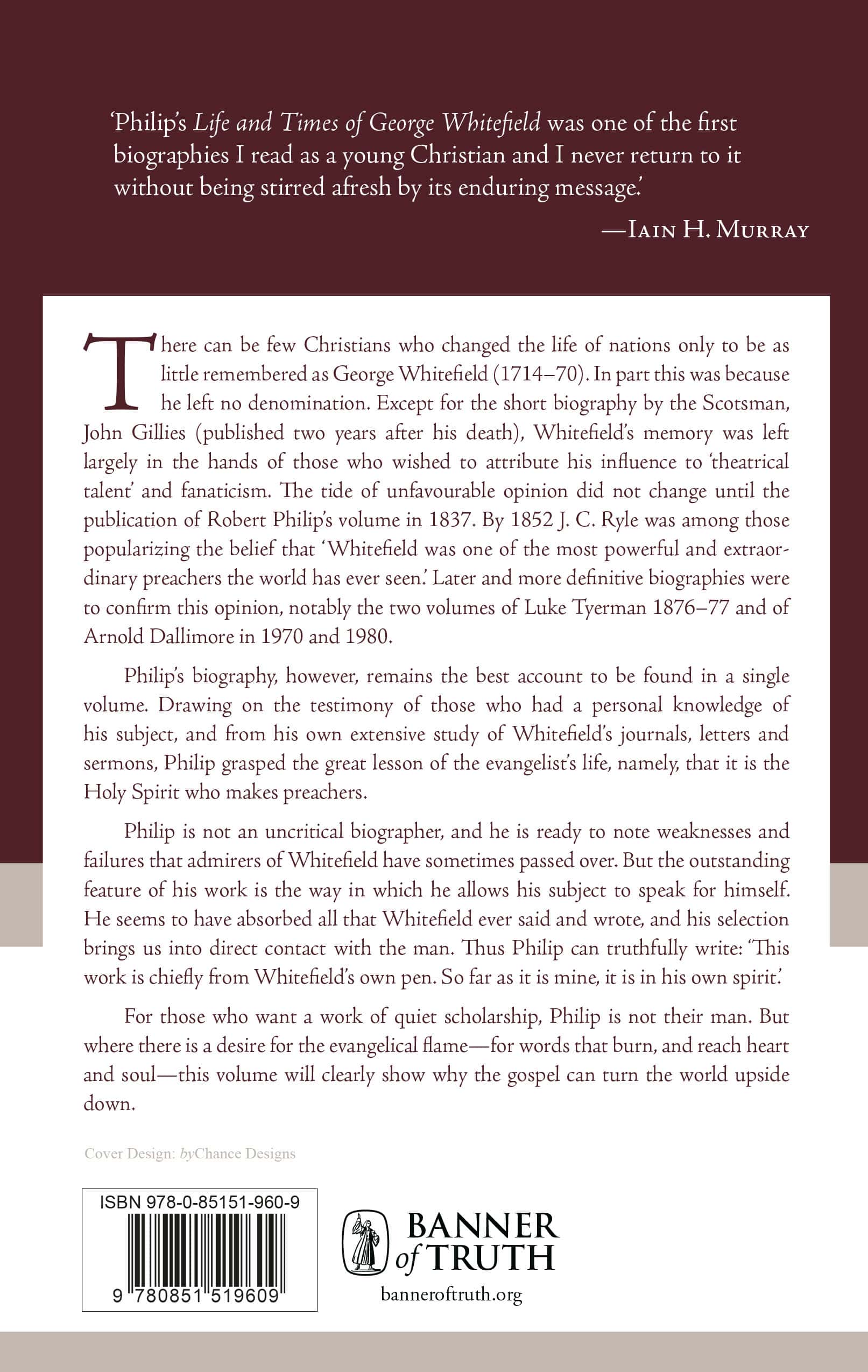 Philip is not an uncritical biographer, and he is ready to note weaknesses and failures that admirers of Whitefield have sometimes passed over. But the outstanding feature of his work is the way in which he allows his subject to speak for himself. He seems to have absorbed all that Whitefield ever said and wrote, and his selection brings us into direct contact with the man. Thus Philip can truthfully write: ‘This work is chiefly from Whitefield’s own pen. So far as it is mine, it is in his own spirit.’