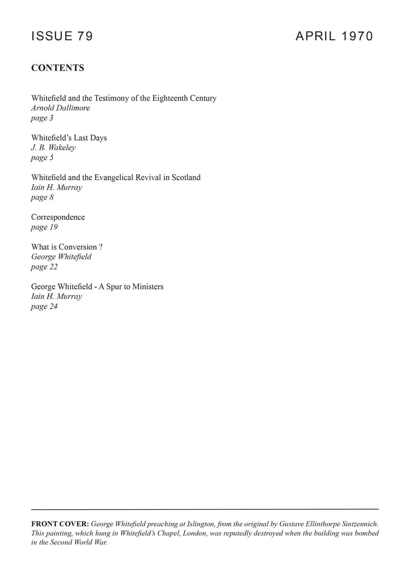 | George Whitefield a Spur to Ministers — Murray, Iain H | 32-40 |