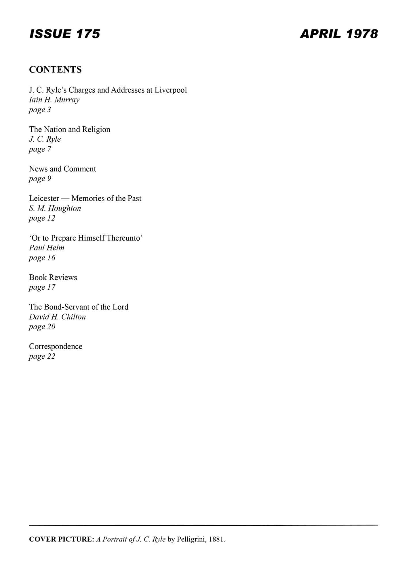 | Nation and Religion — Ryle, J C | 7-9 |