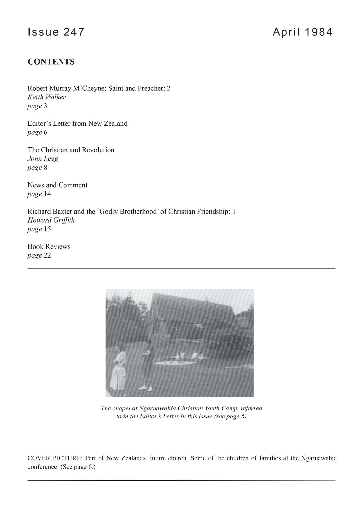 | Letter from New Zealand — Murray, Iain H | 7-8 |