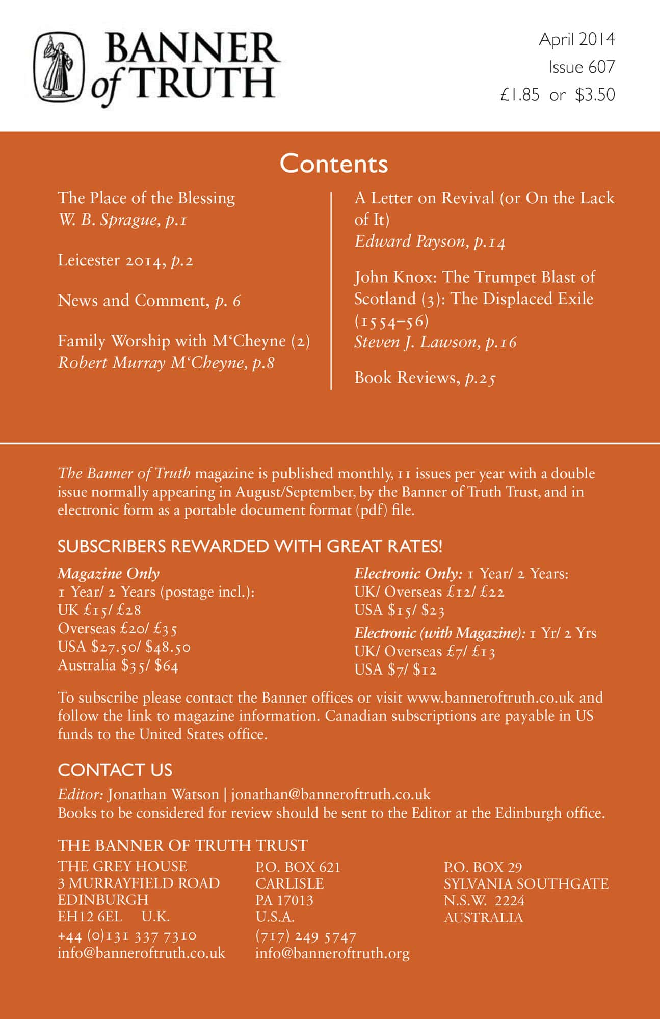 Subscribe to the Banner of Truth Magazine for 11 edifying issues each year (including summer double issue).