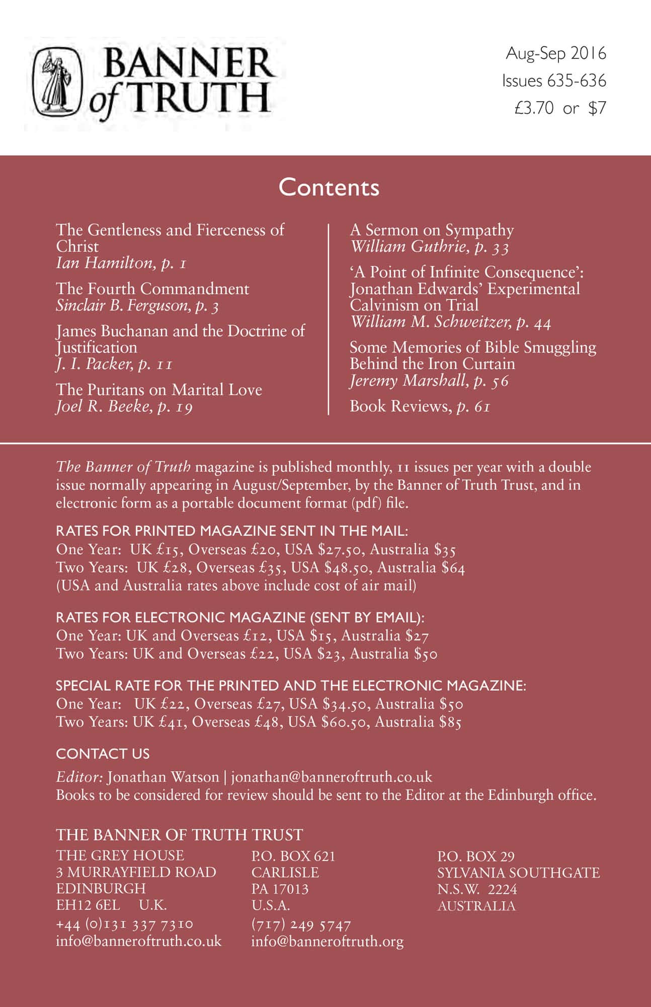 Subscribe to the Banner of Truth Magazine for 11 edifying issues each year (including summer double issue).
