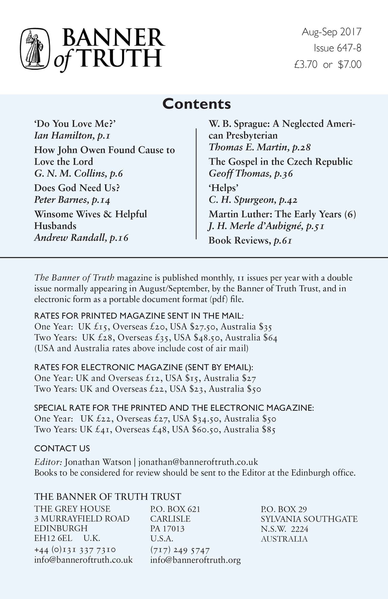 Subscribe to the Banner of Truth Magazine for 11 edifying issues each year (including summer double issue).