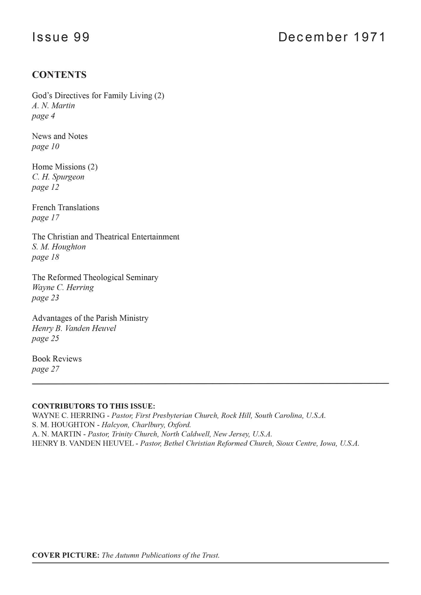| Advantages of the Parish Ministry — Vanden Heuvel, Henry B | 37-39 |