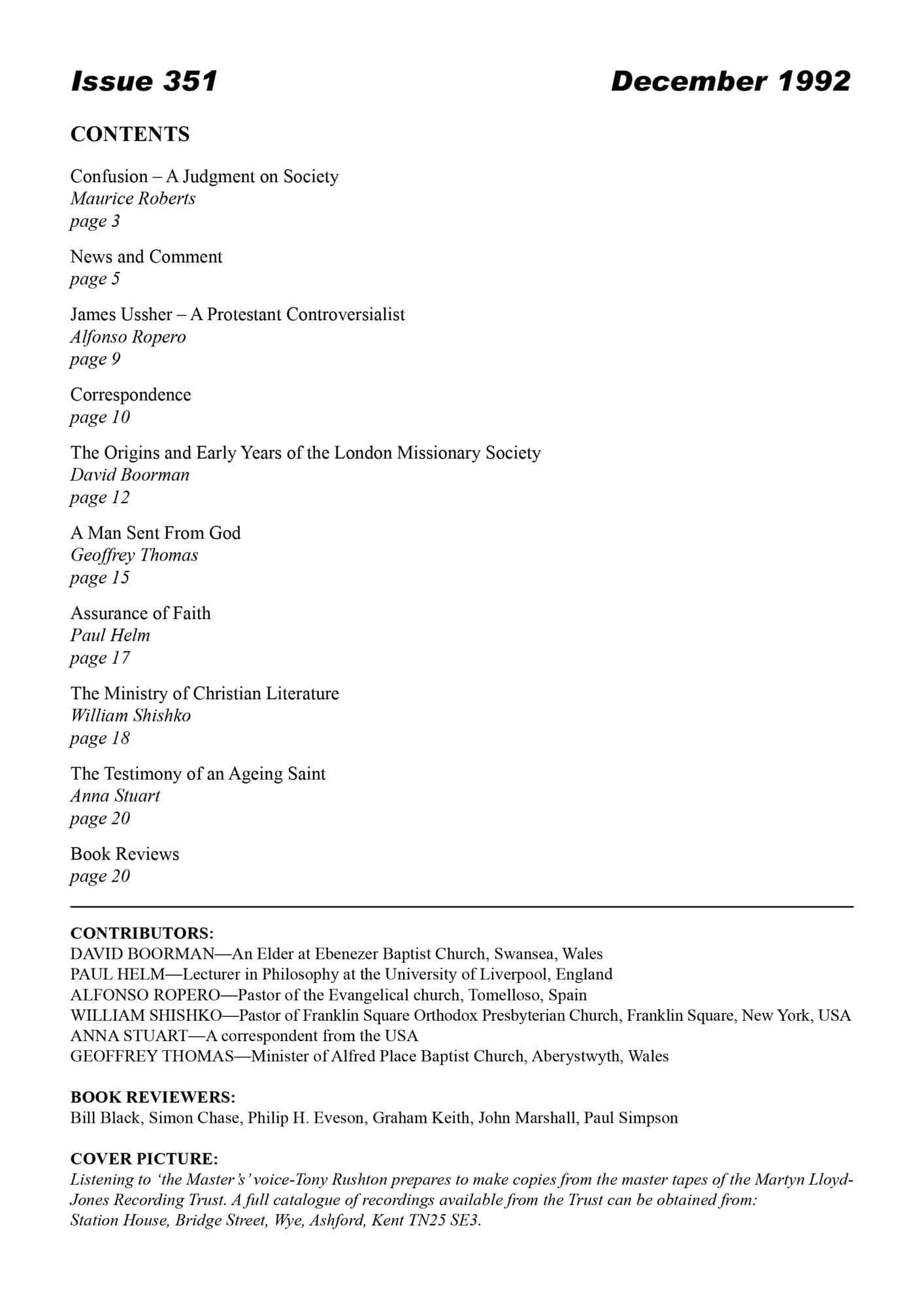 | James Ussher: A Protestant Controversialist — Ropero, Alphonso | 9-11 |