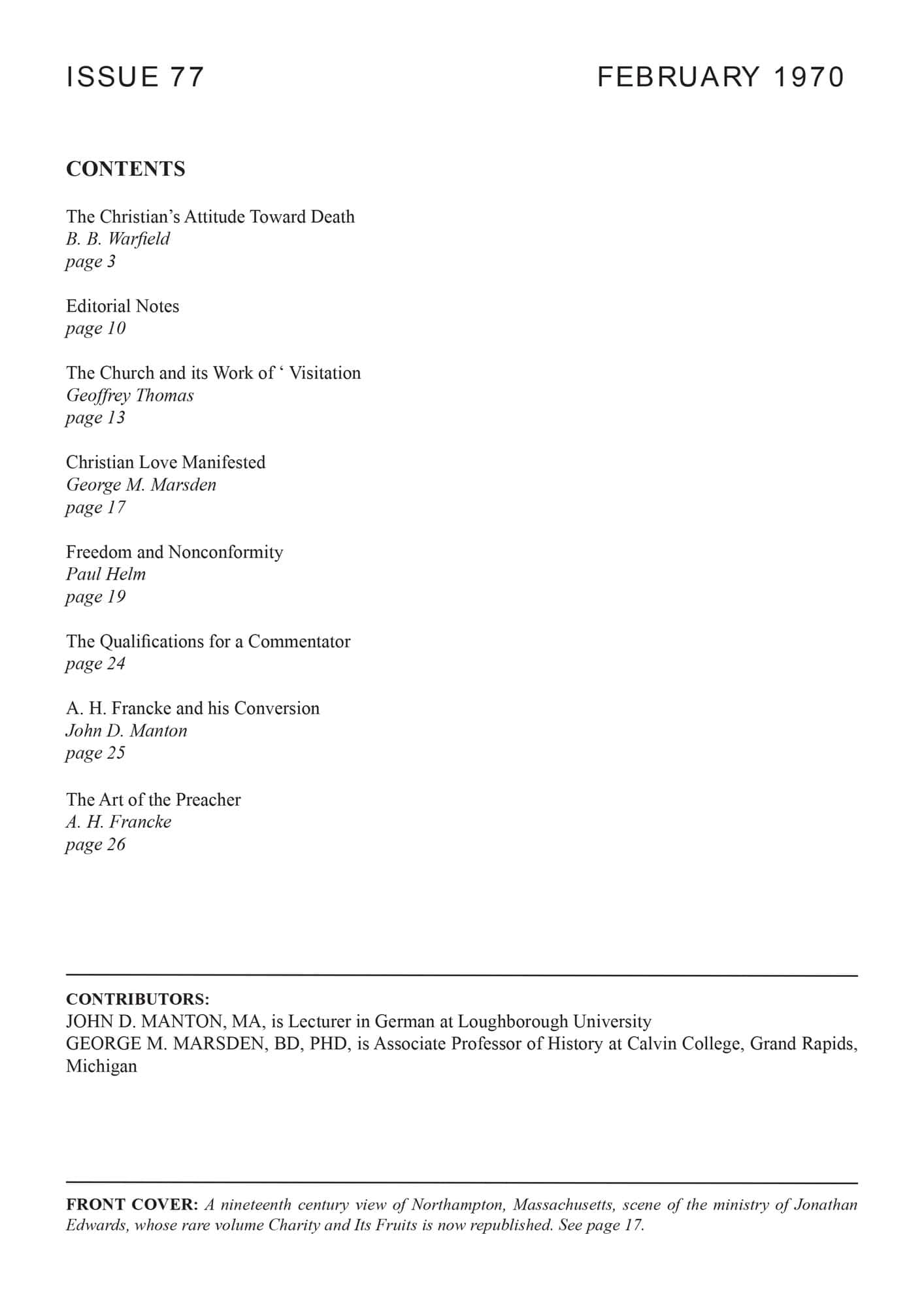 | A. H. Francke and his Conversion — Manton, John D | 33-34 |
