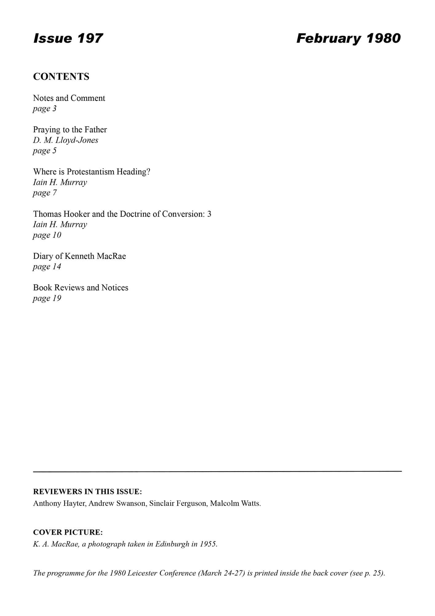 | Where is Protestantism Heading? — Murray, Iain H | 8-11 |