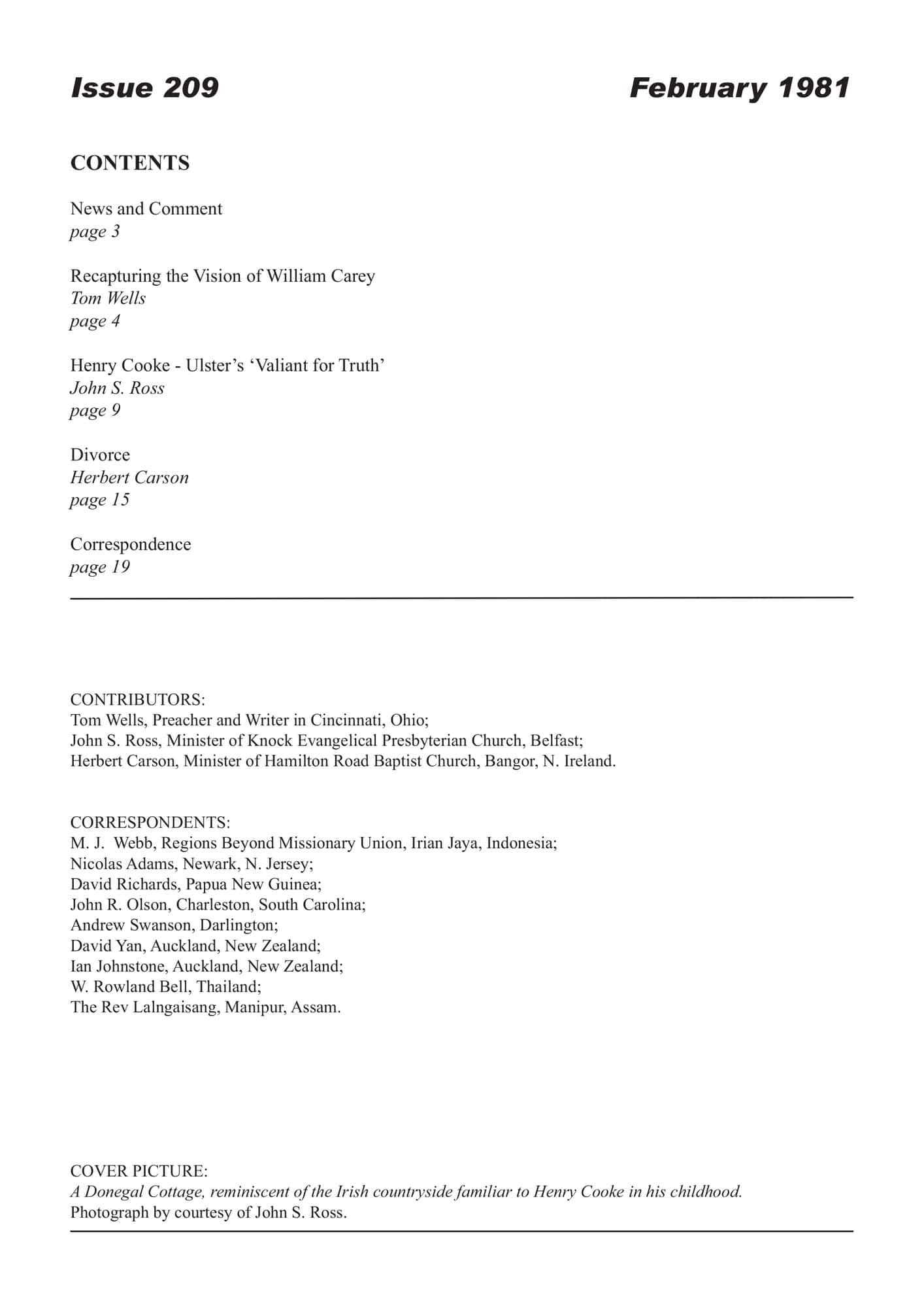 | Recapturing the Vision of William Carey — Wells, Tom | 3-10 |