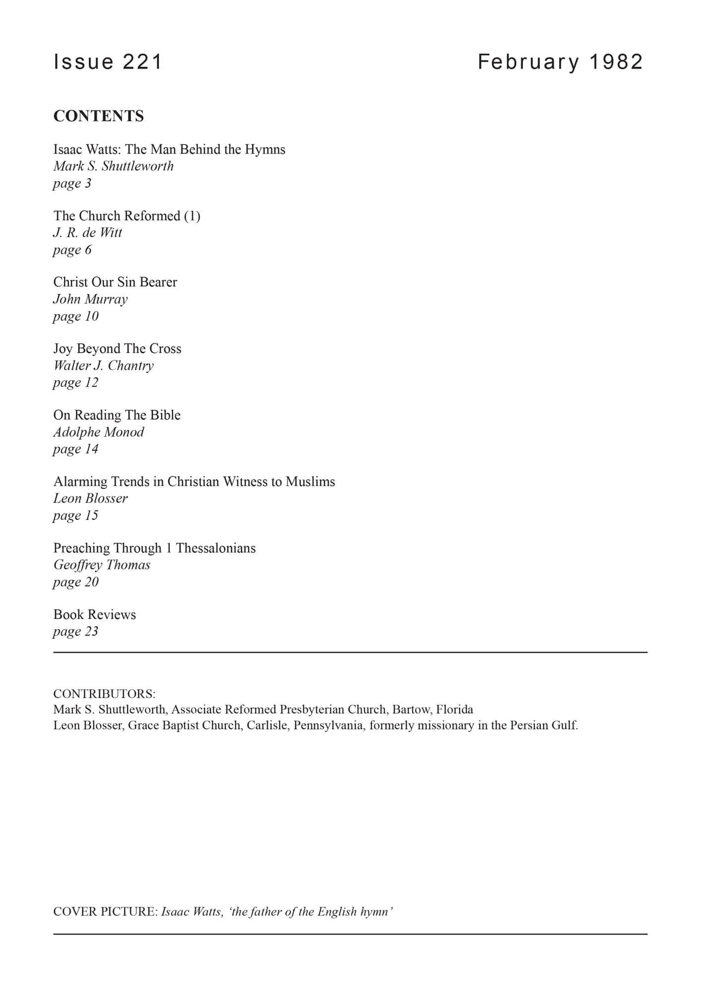 | Isaac Watts: The Man Behind the Hymns — Shuttleworth, Mark S | 1-5 |