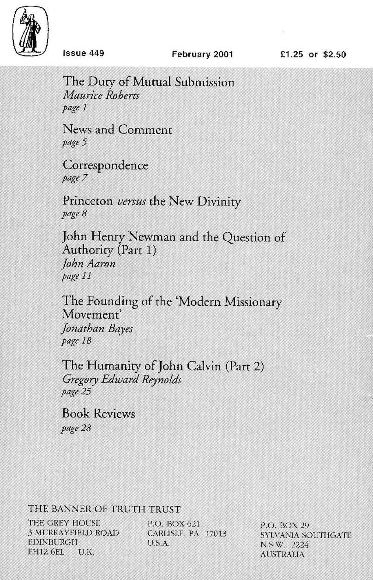 | Humanity of John Calvin (2) — Reynolds, Gregory Edward | 25-27 |