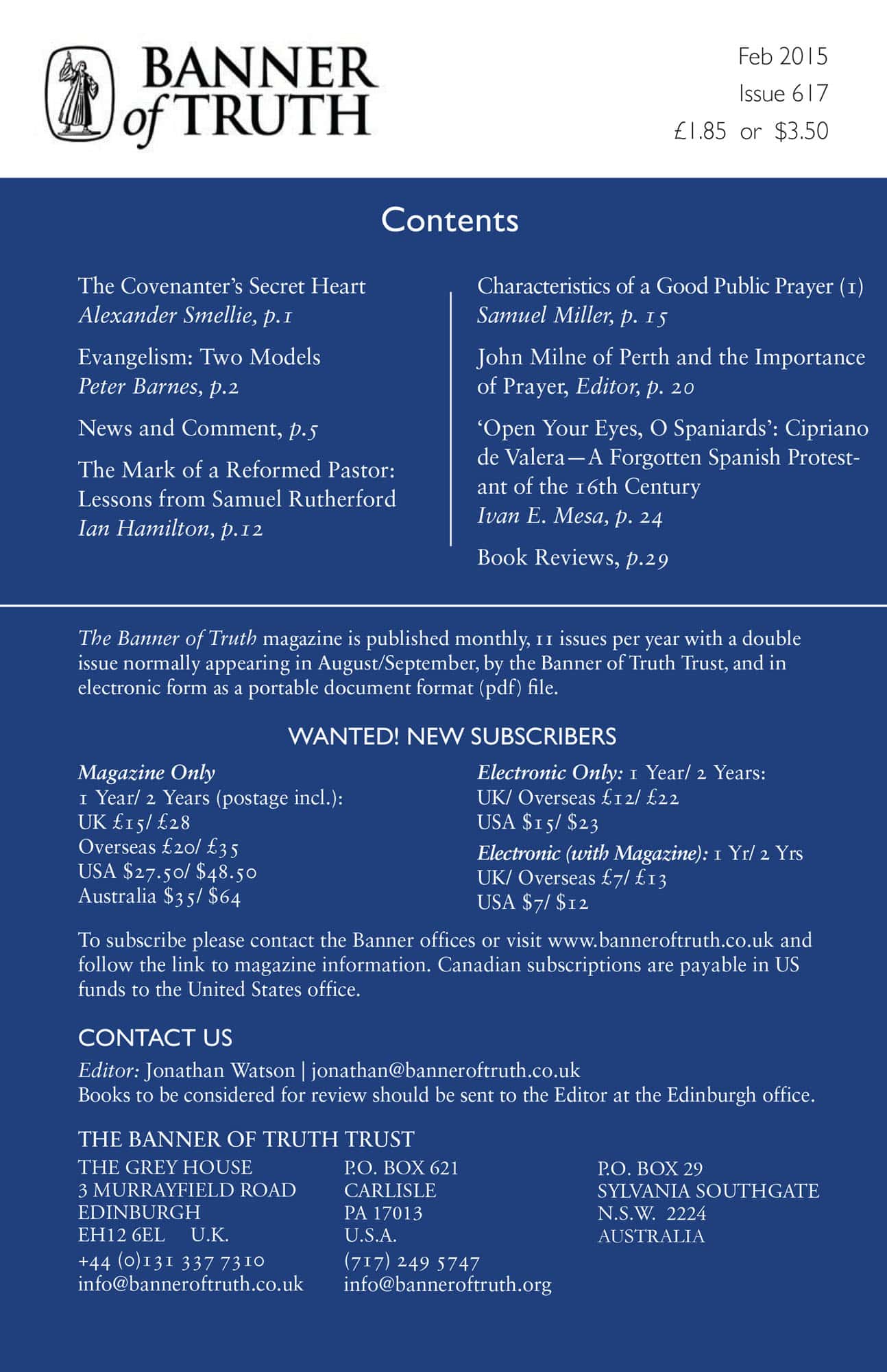 Subscribe to the Banner of Truth Magazine for 11 edifying issues each year (including summer double issue).