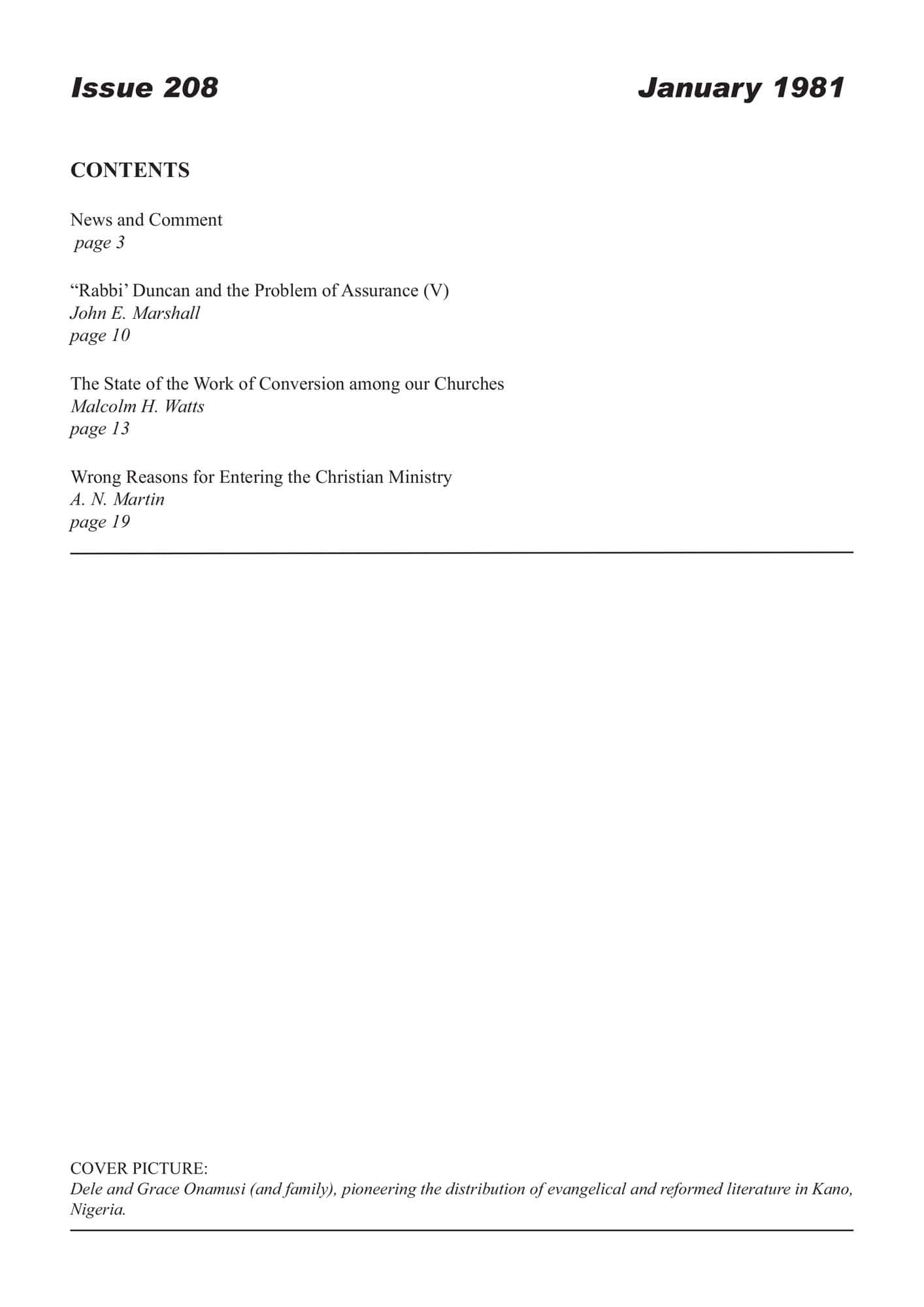 | Wrong Reasons for Entering the Christian Ministry — Martin, Albert N | 23-32 |