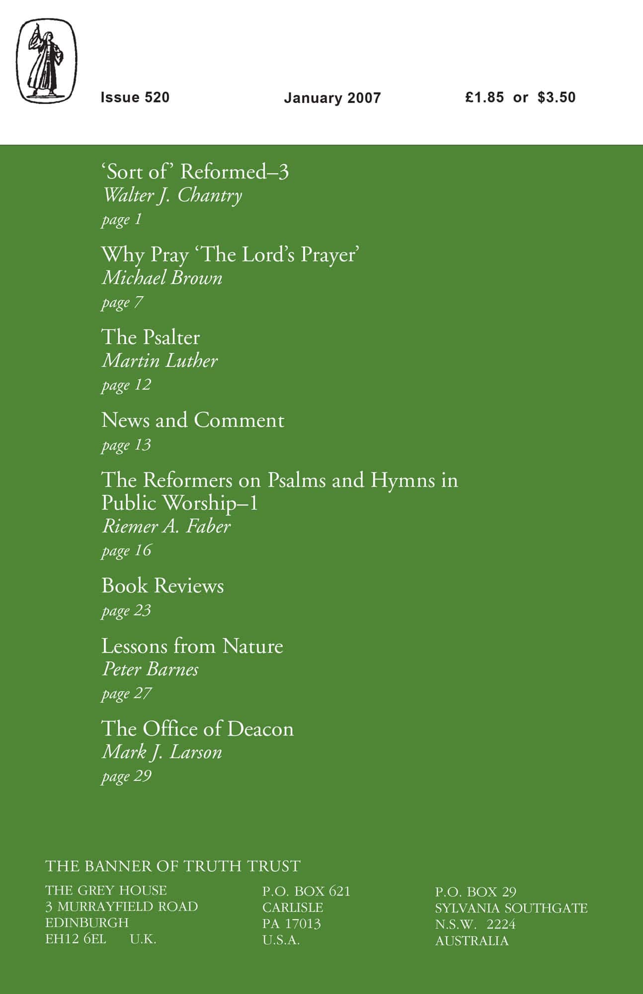 | Reformers on Psalms and Hymns in Public Worship – 1 — Faber, Riemer A | 16-22 |