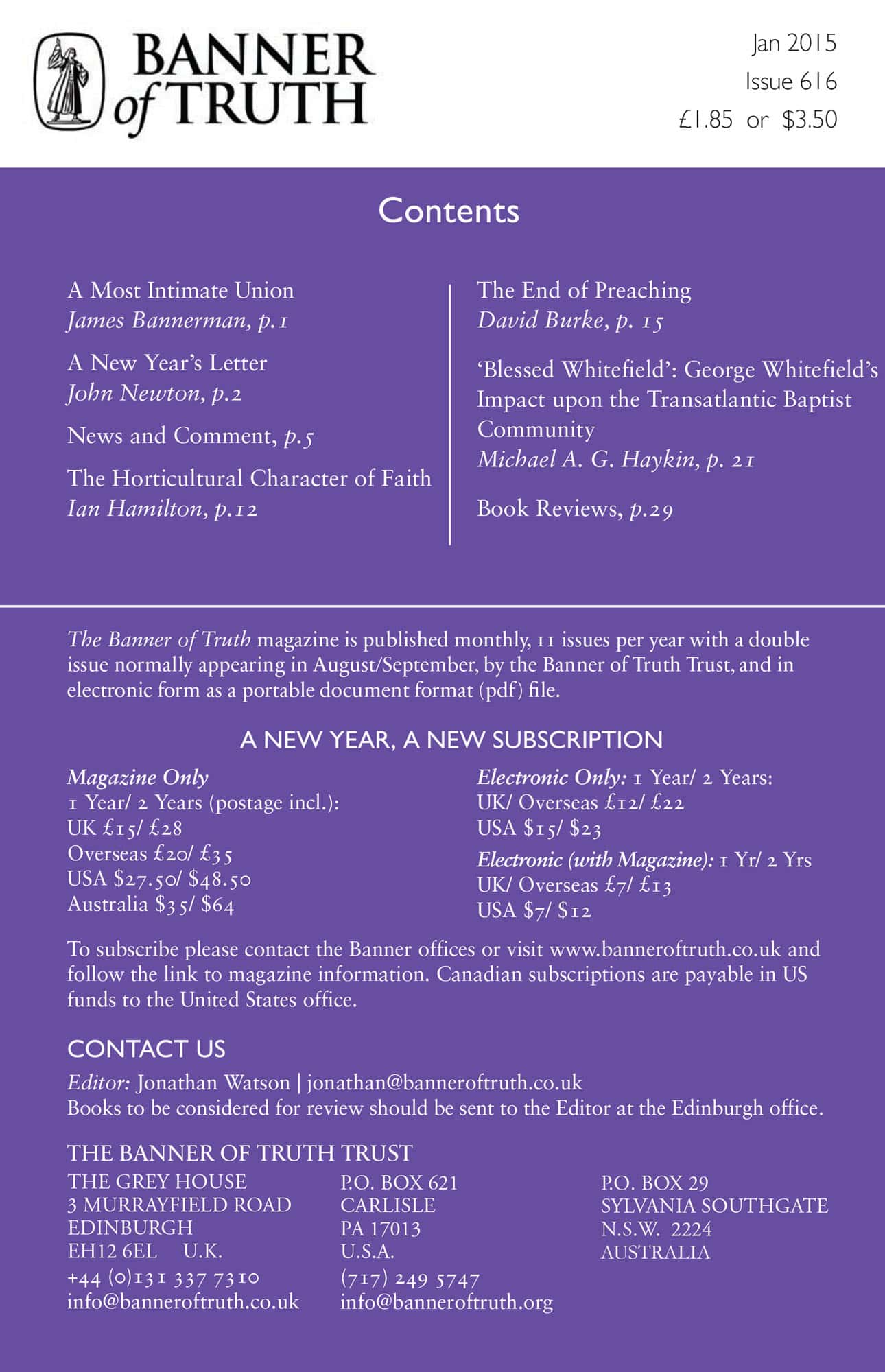 Subscribe to the Banner of Truth Magazine for 11 edifying issues each year (including summer double issue).