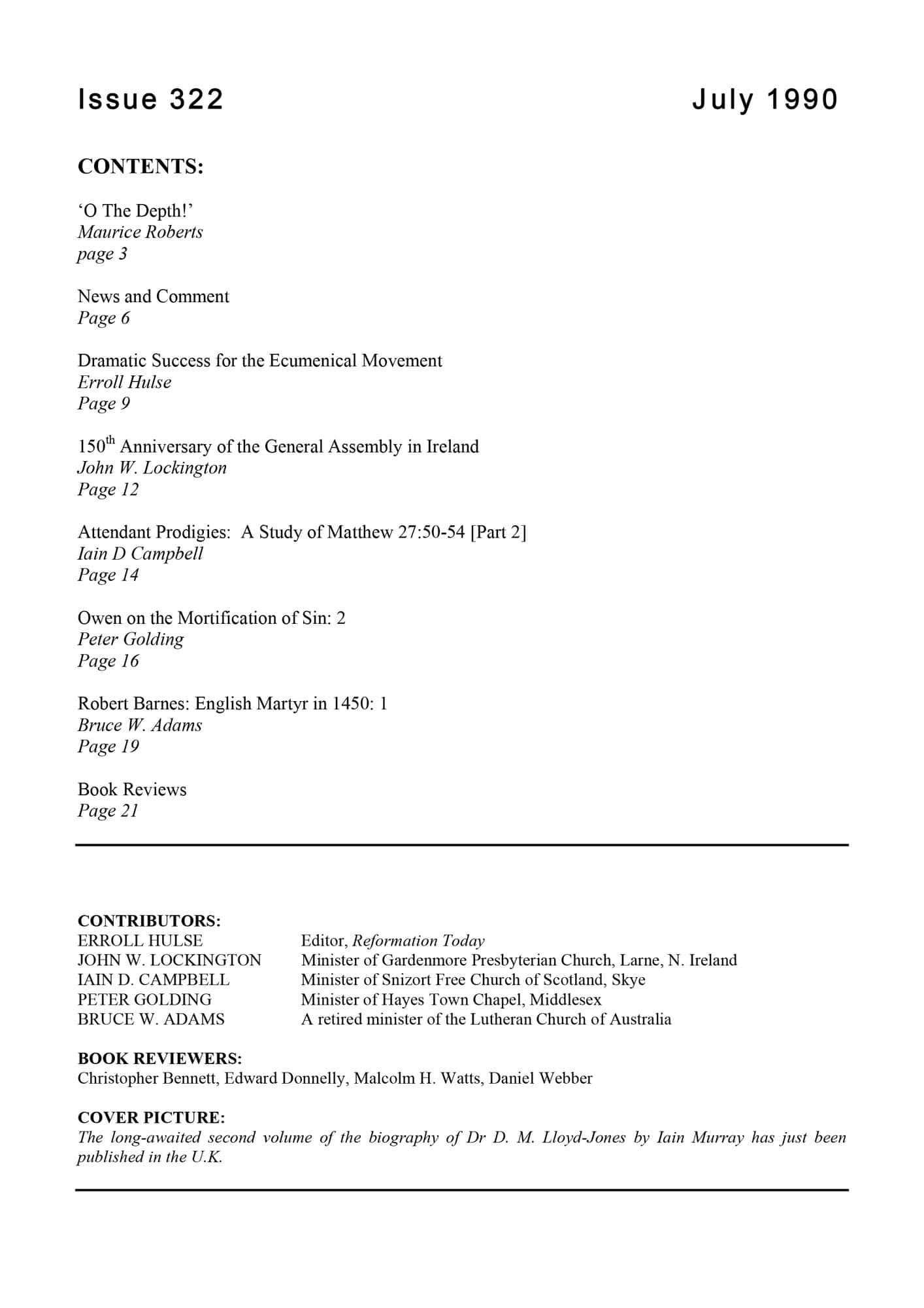 | Robert Barnes: English Martyr in 1540 (1) — Adams, Bruce W | 25-27 |