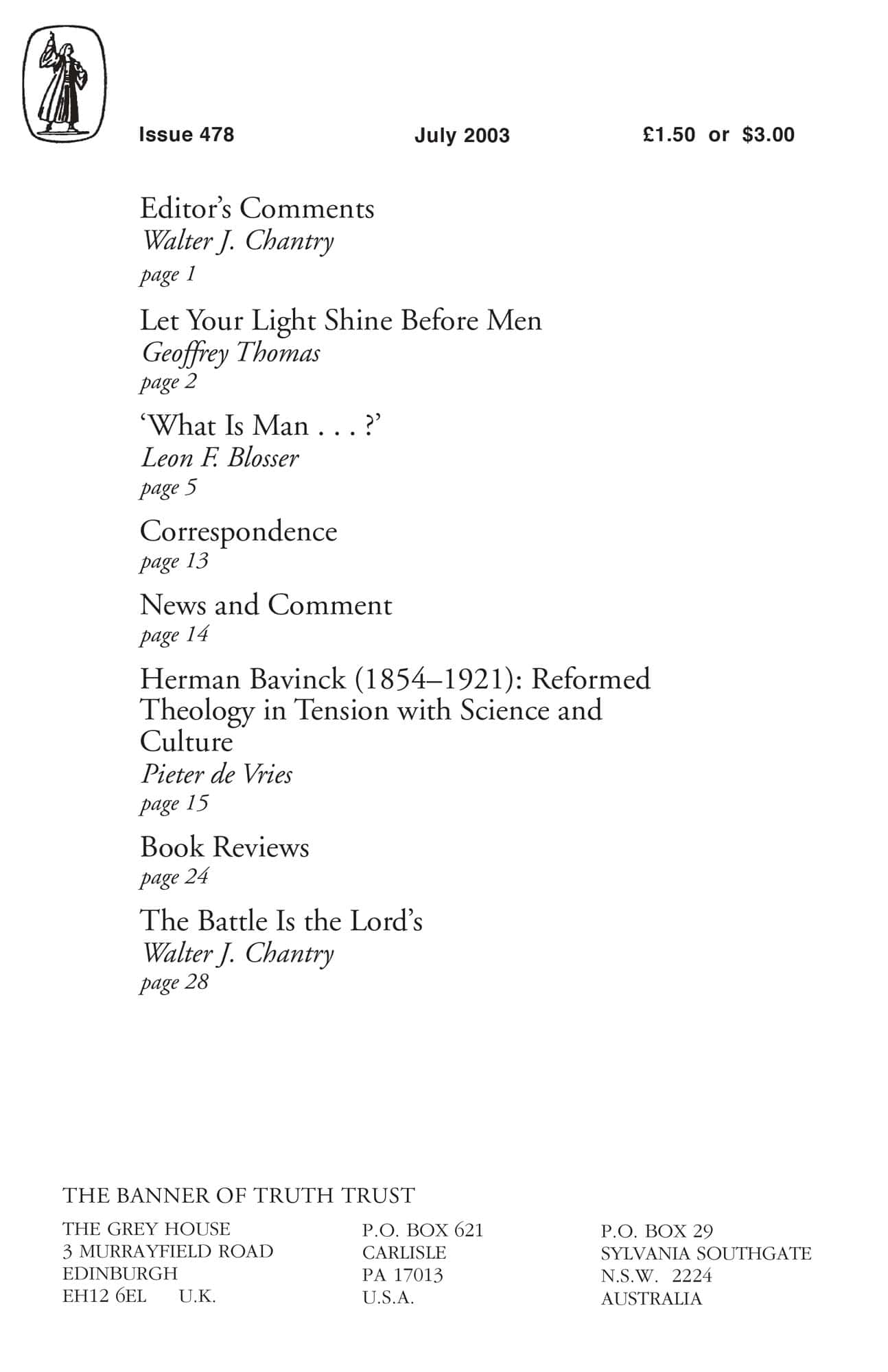 Subscribe to the Banner of Truth Magazine for 11 edifying issues each year (including summer double issue).
