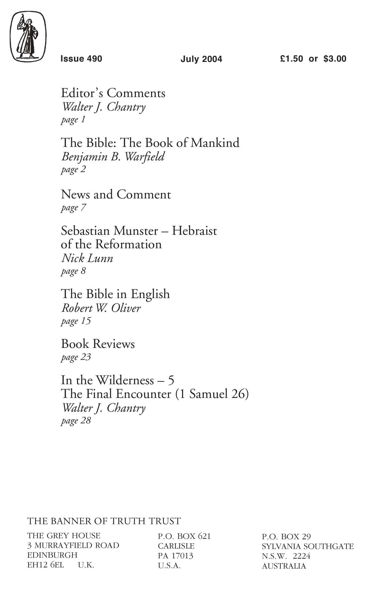 | In the Wilderness – 5: The Final Encounter (1 Samuel 26) — Chantry, Walter J | 28-32 |
