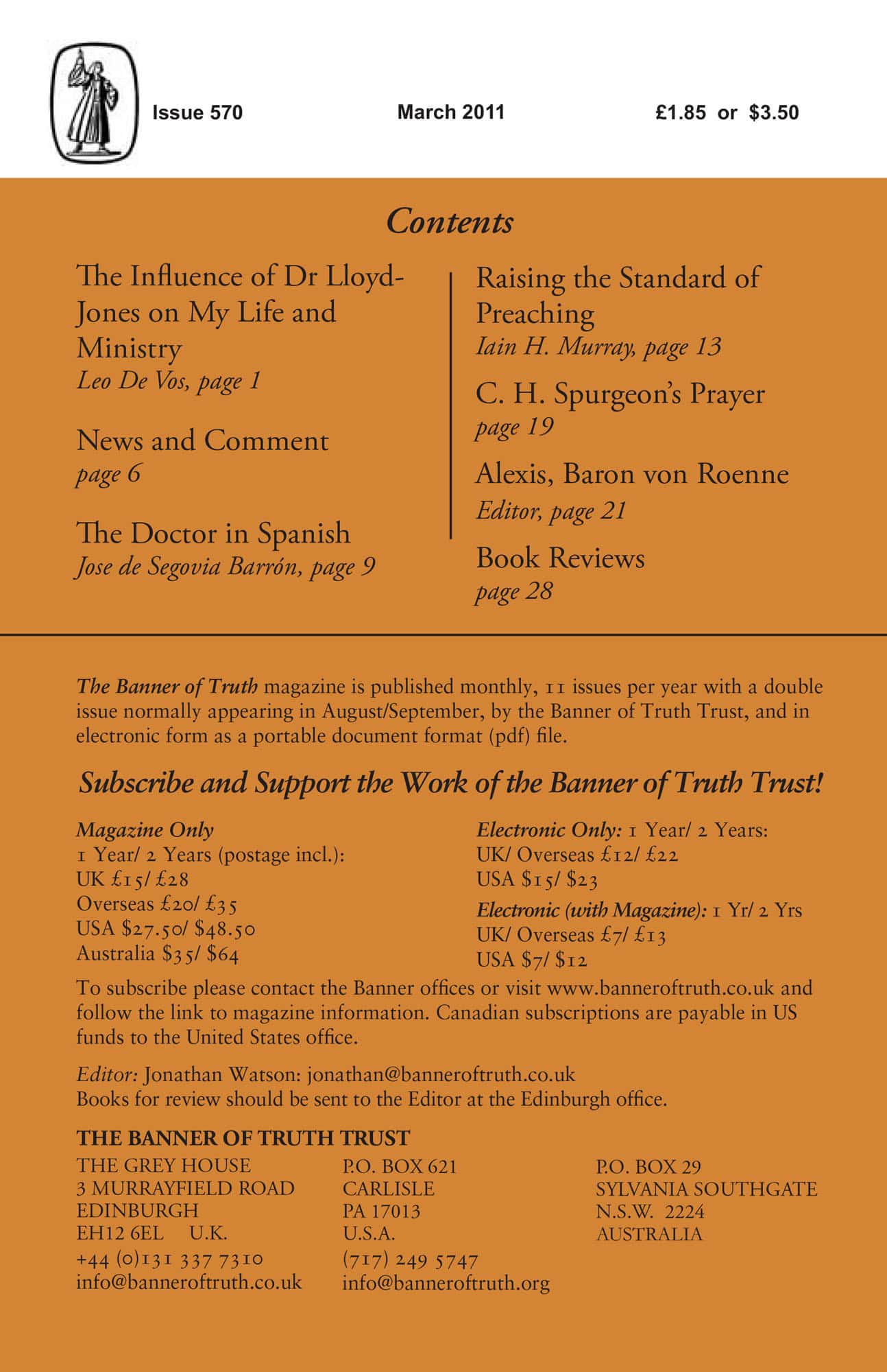 Subscribe to the Banner of Truth Magazine for 11 edifying issues each year (including summer double issue).
