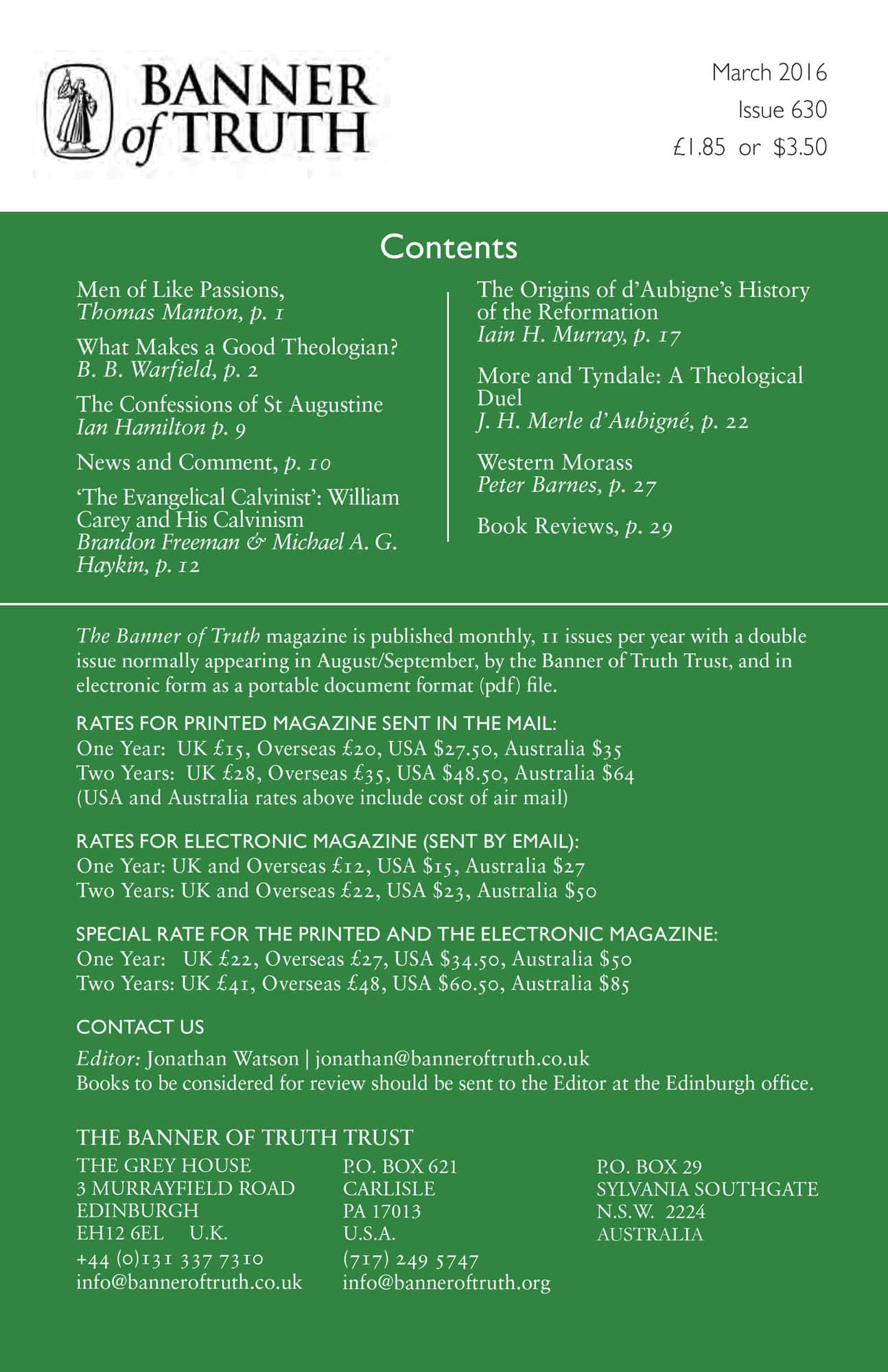 Subscribe to the Banner of Truth Magazine for 11 edifying issues each year (including summer double issue).