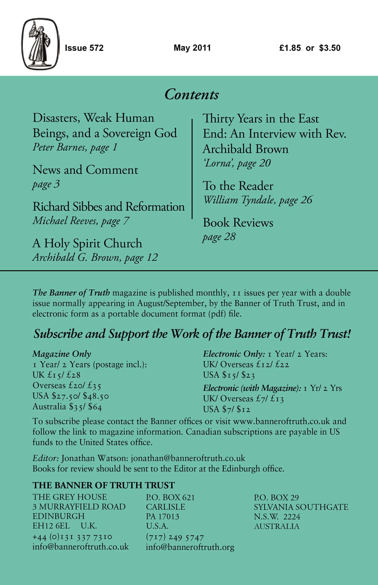 Subscribe to the Banner of Truth Magazine for 11 edifying issues each year (including summer double issue).