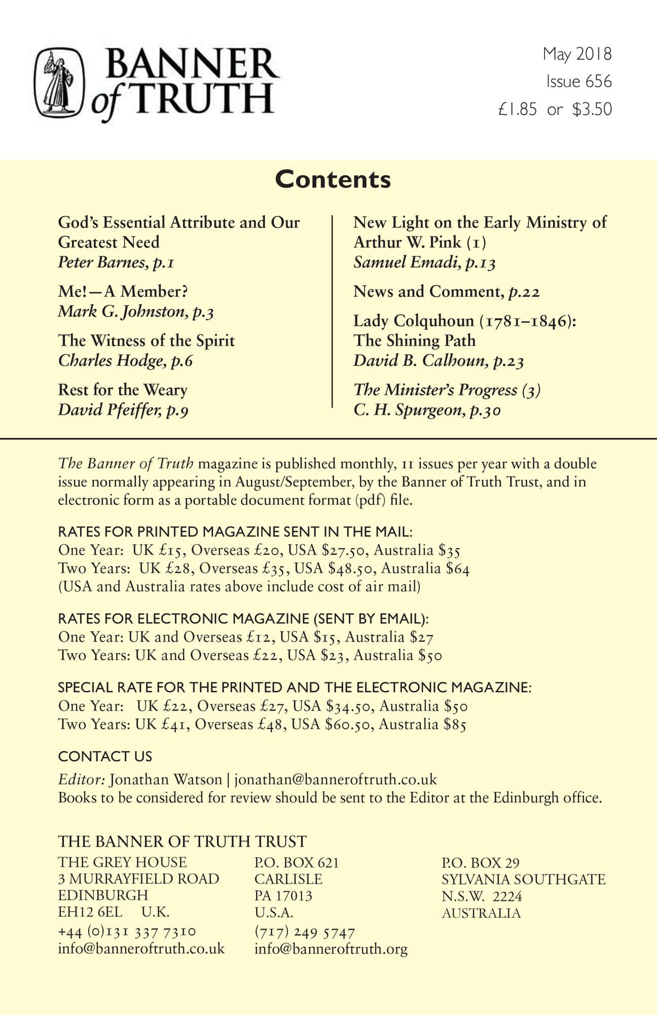 Subscribe to the Banner of Truth Magazine for 11 edifying issues each year (including summer double issue). Table of Contents Disasters, Weak Human Beings, and a Sovereign God — Barnes, Peter 1-3 Richard Sibbes and Reformation — Reeves, Michael 7-11 Holy Spirit Church — Brown, Archibald G 12-19 Thirty Years in East London: An Interview […]