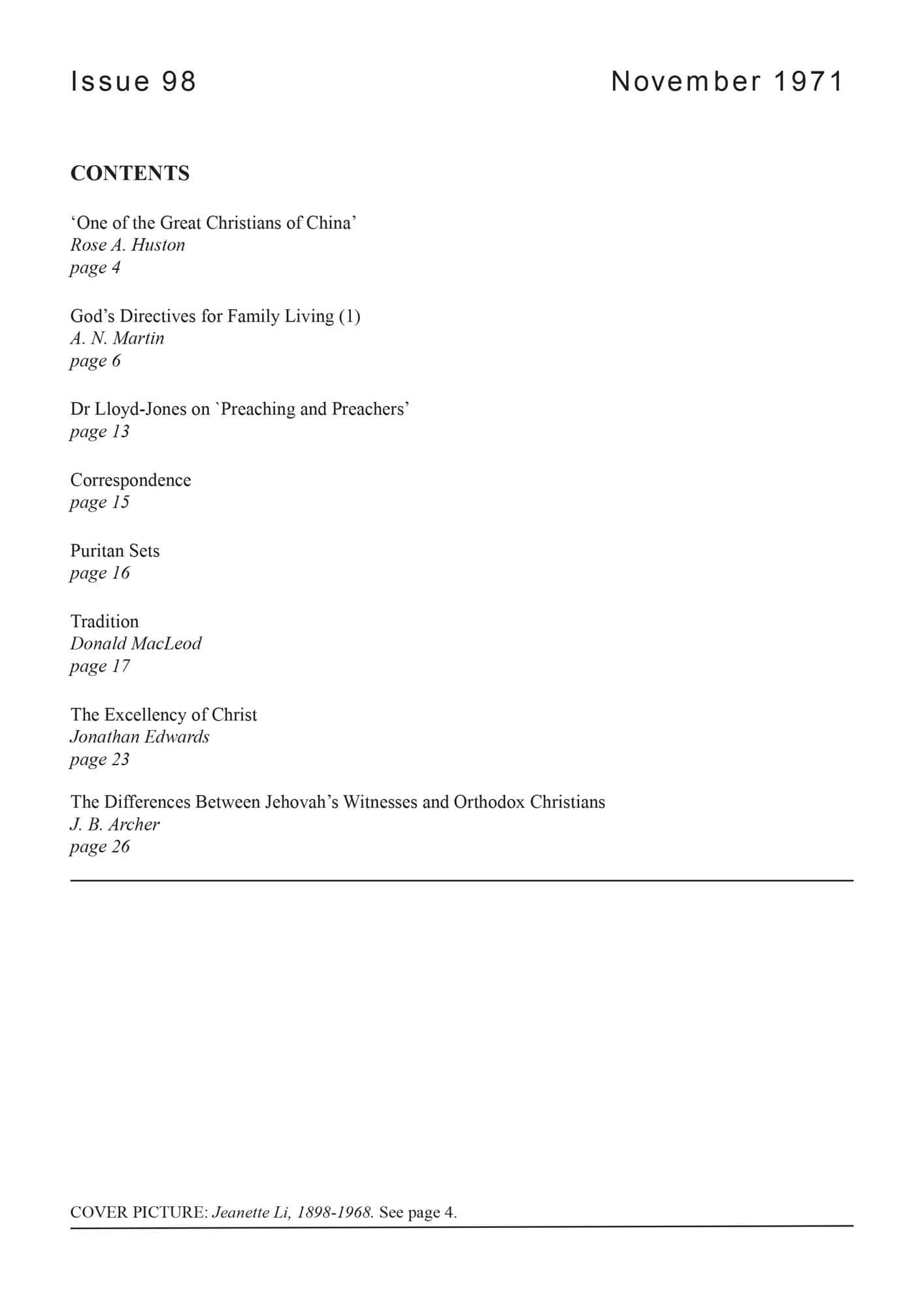 | One of the Great Christians of China: Jeanette Li — Huston, Rose A | 1-3 |