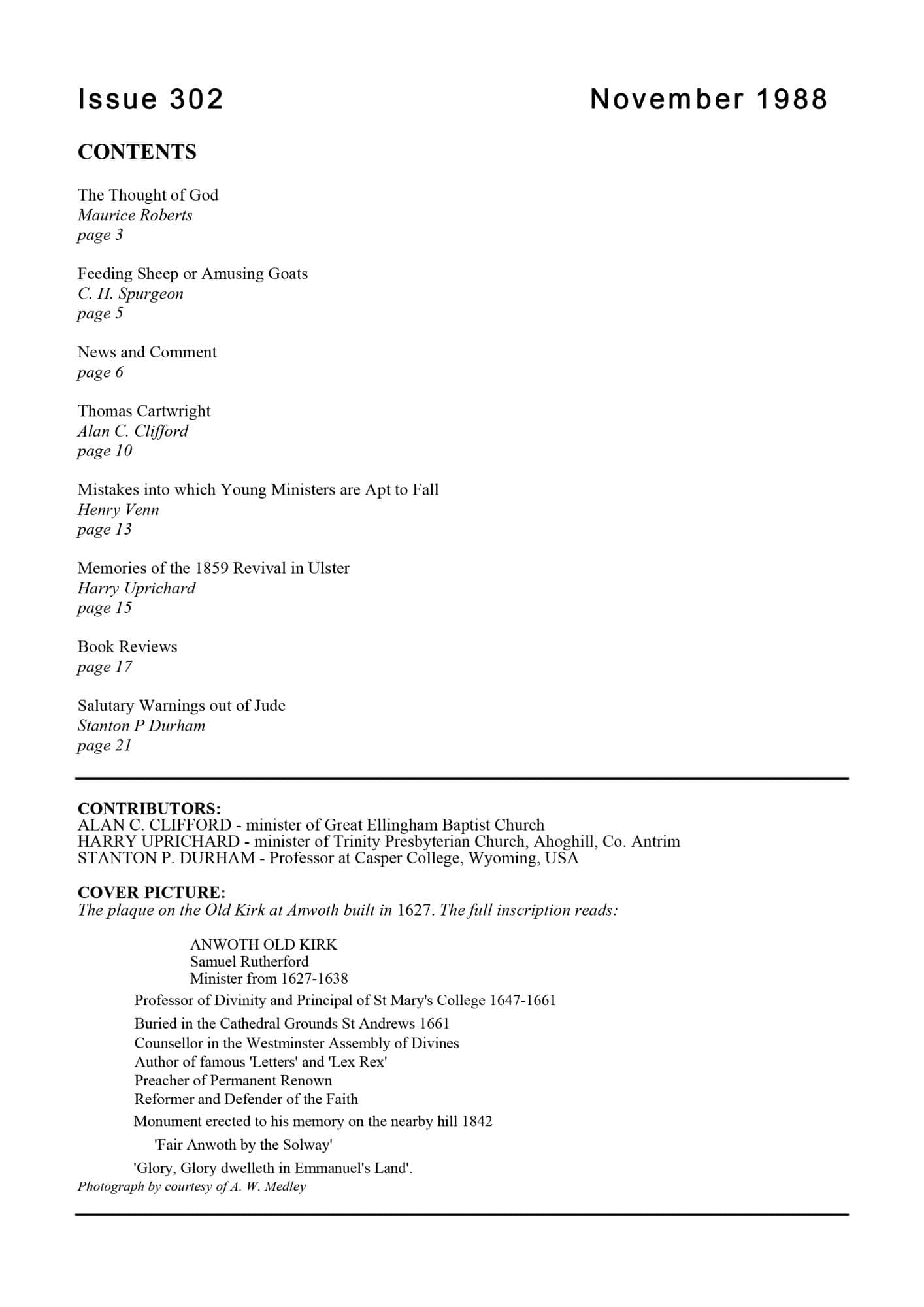 Subscribe to the Banner of Truth Magazine for 11 edifying issues each year (including summer double issue). Table of Contents Fine Man of a Past Century — Watson, Jonathan 1-4 Bill Sykes and ‘that Little Bit’ — Brown, Archibald G 5-10 Bill Sykes and ‘that Little Bit’ — Brown, Archibald G 5-10 Rev Hugh M […]