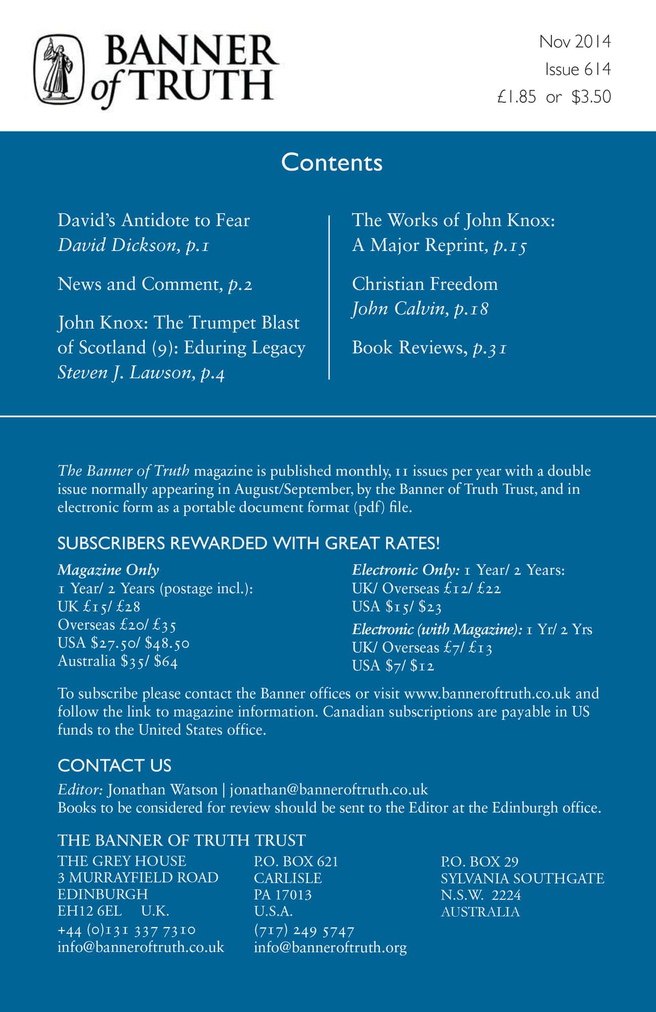 Subscribe to the Banner of Truth Magazine for 11 edifying issues each year (including summer double issue).