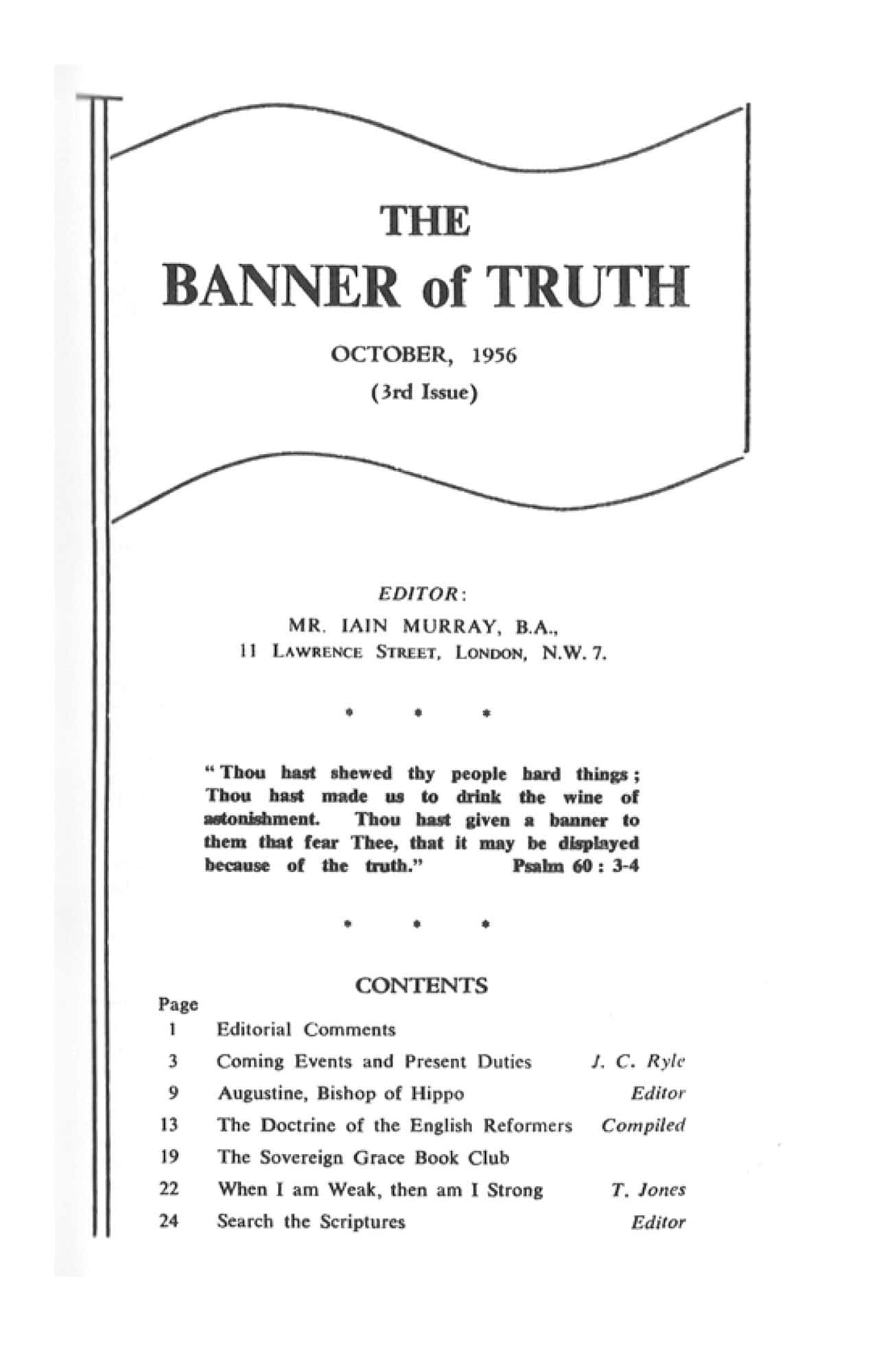Subscribe to the Banner of Truth Magazine for 11 edifying issues each year (including summer double issue). Table of Contents Prayer: Some Suggestions — Barnes, Peter 1-3 Penitence of Josiah — Chantry, Thomas 6-12 Duty, Benefits and the Proper Method of Religious Fasting — Miller, Samuel 12-34 Response to the Decision of the gereral assembly […]