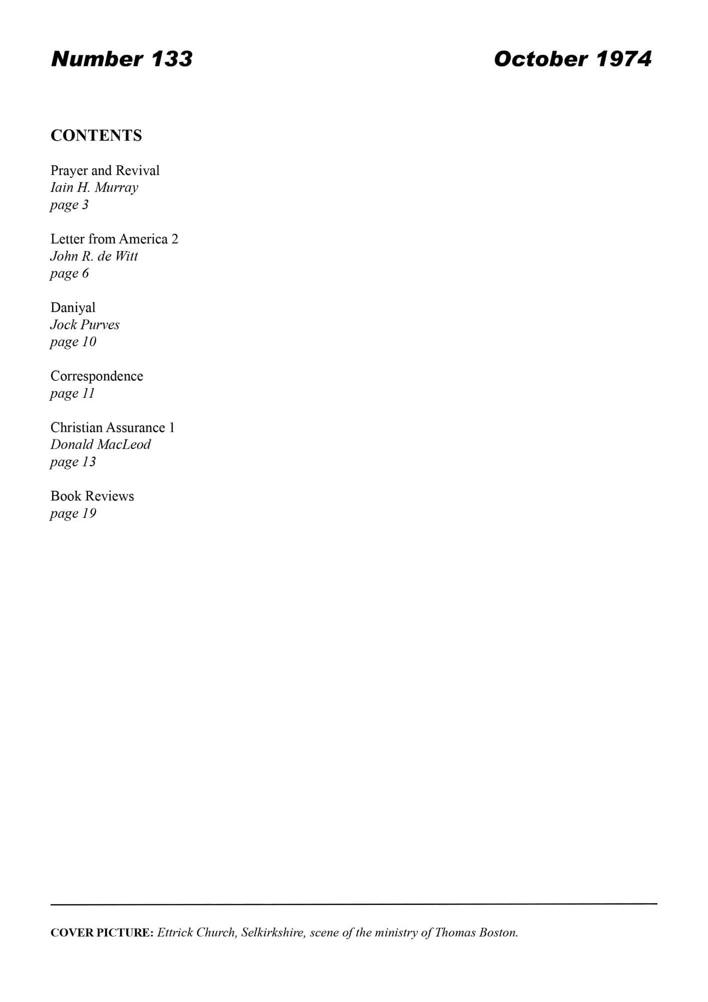 | Letter from America: The Ministry (1) — De Witt, John R | 6-10 |