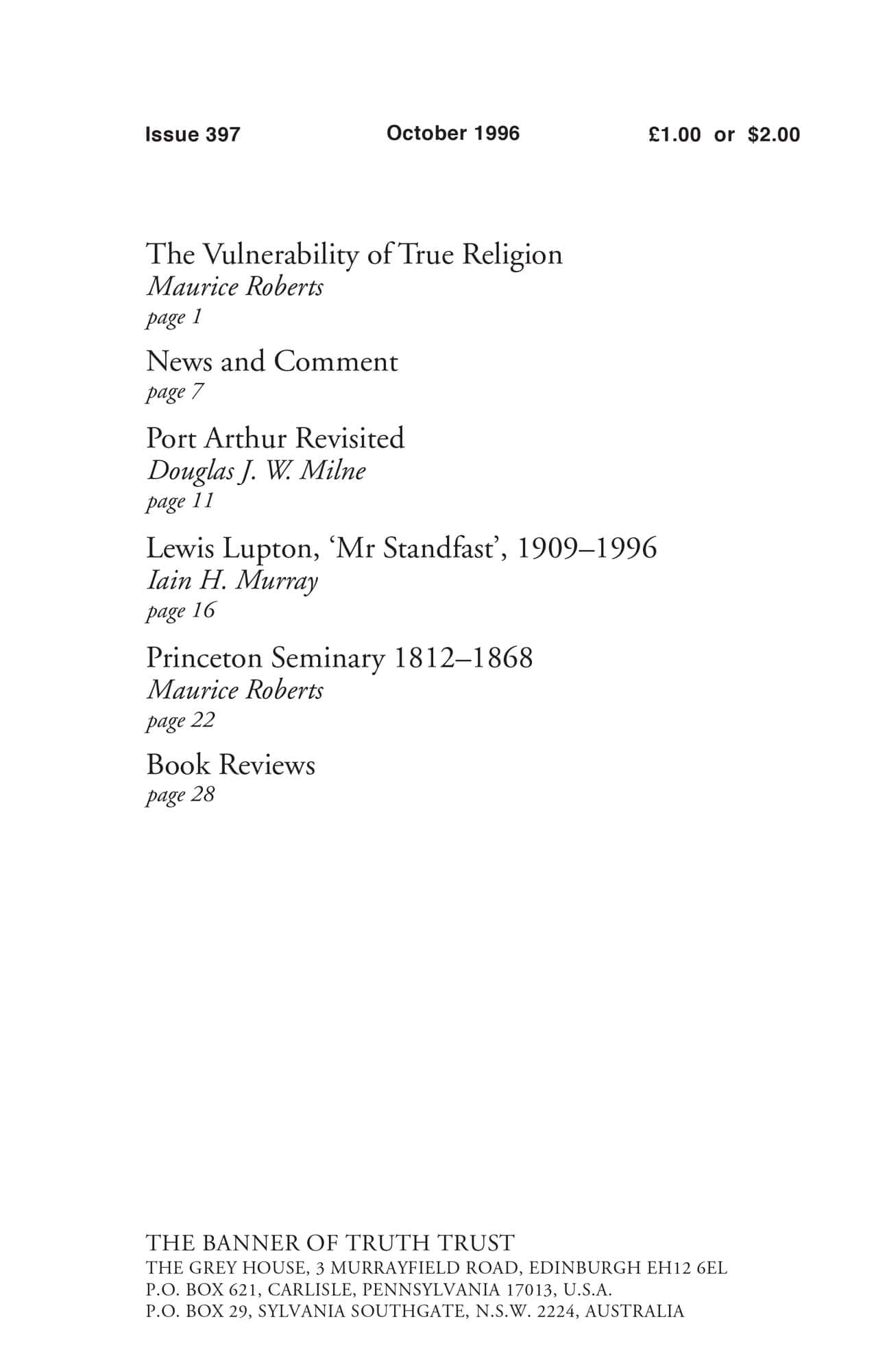 | Vulnerability of True Religion — Roberts, Maurice J | 1-6 |