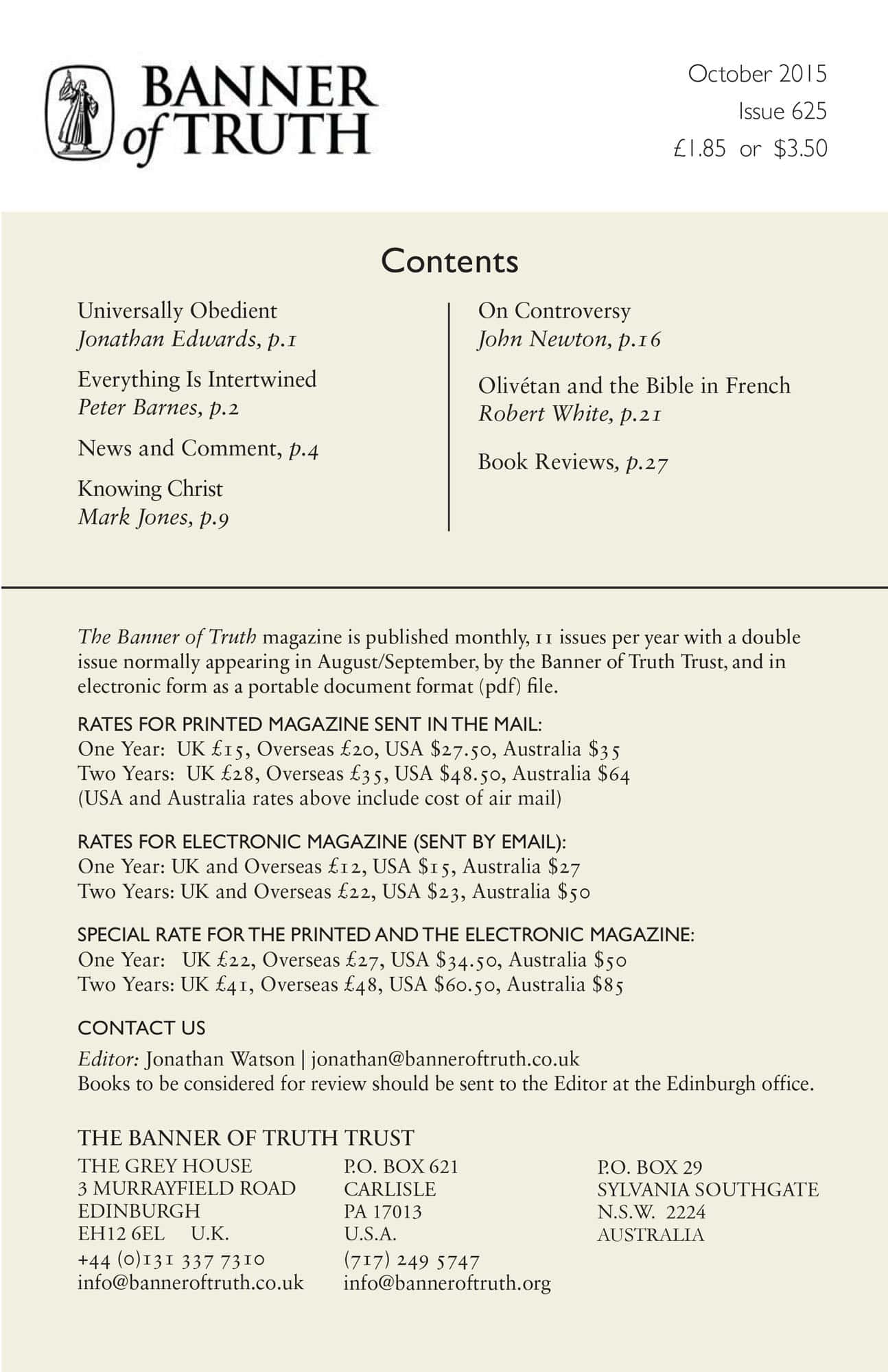 Subscribe to the Banner of Truth Magazine for 11 edifying issues each year (including summer double issue).
