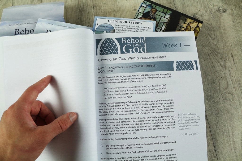 Behold Your God: The Weight of Majesty is a 12-week multimedia Bible study for churches, small groups, families, or individuals containing 12 sessions that are reinforced by a 12-week daily workbook. Each week’s lesson is preceded by a brief 2-part historical profile of a notable man or woman of God such as John Knox, Hudson Taylor, Anne Judson, John Newton, Edward Payson, and John Bunyan.