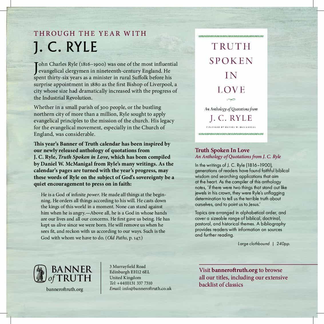 - Each month features attractive British artwork paired with a quote from J. C. Ryle