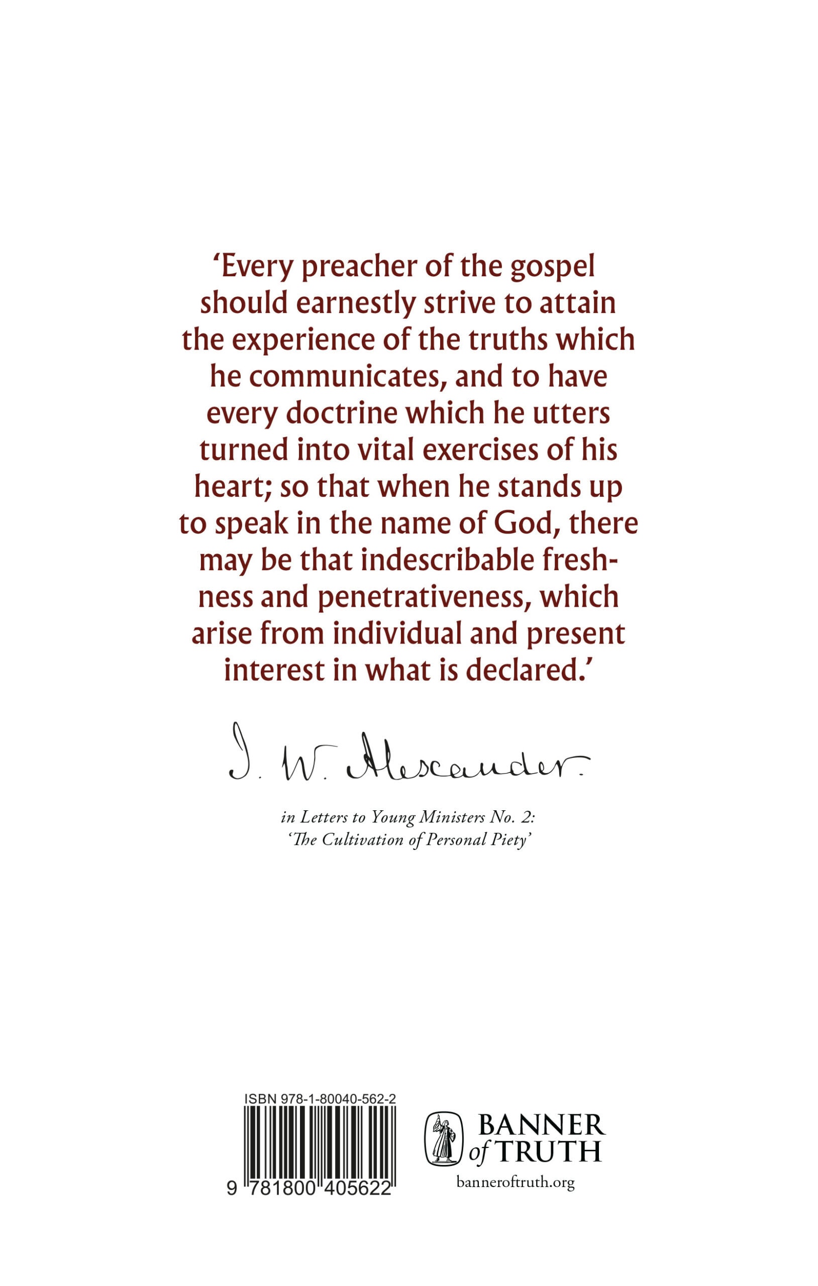 ‘Every preacher of the gospel should earnestly strive to attain the experience of the truths which he communicates, and to have every doctrine which he utters turned into vital exercises of his heart; so that when he stands up to speak in the name of God, there may be that indescribable freshness and penetrativeness, which arise from individual and present interest in what is declared.’ — J. W. Alexander