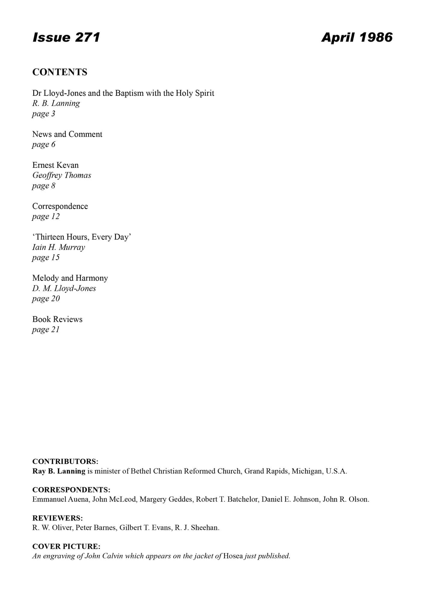 | Lloyd-Jones and the Baptism with the Holy Spirit — Lanning, R B, Dr | 1-5 |