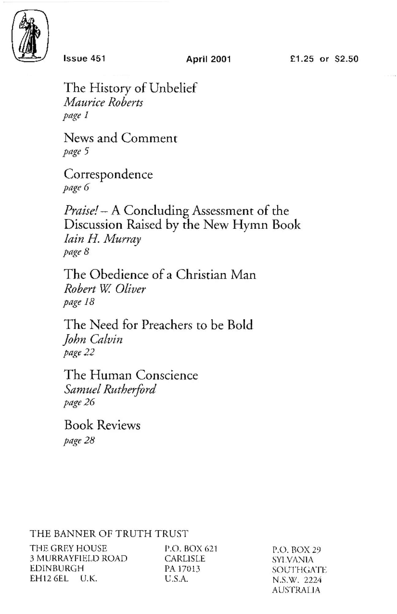 | Praise! a Concluding Assessment of the Discussion Raised by the New Hymn Book — Murray, Iain H | 8-18 |