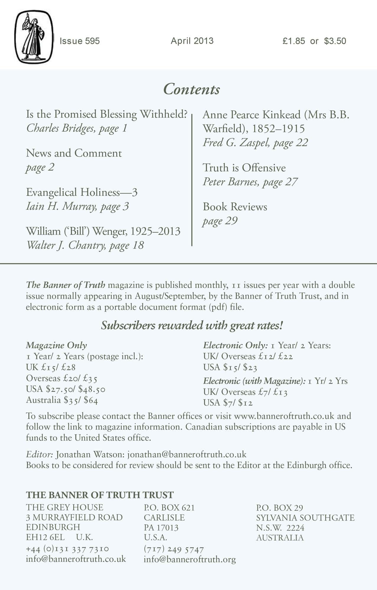 Subscribe to the Banner of Truth Magazine for 11 edifying issues each year (including summer double issue).