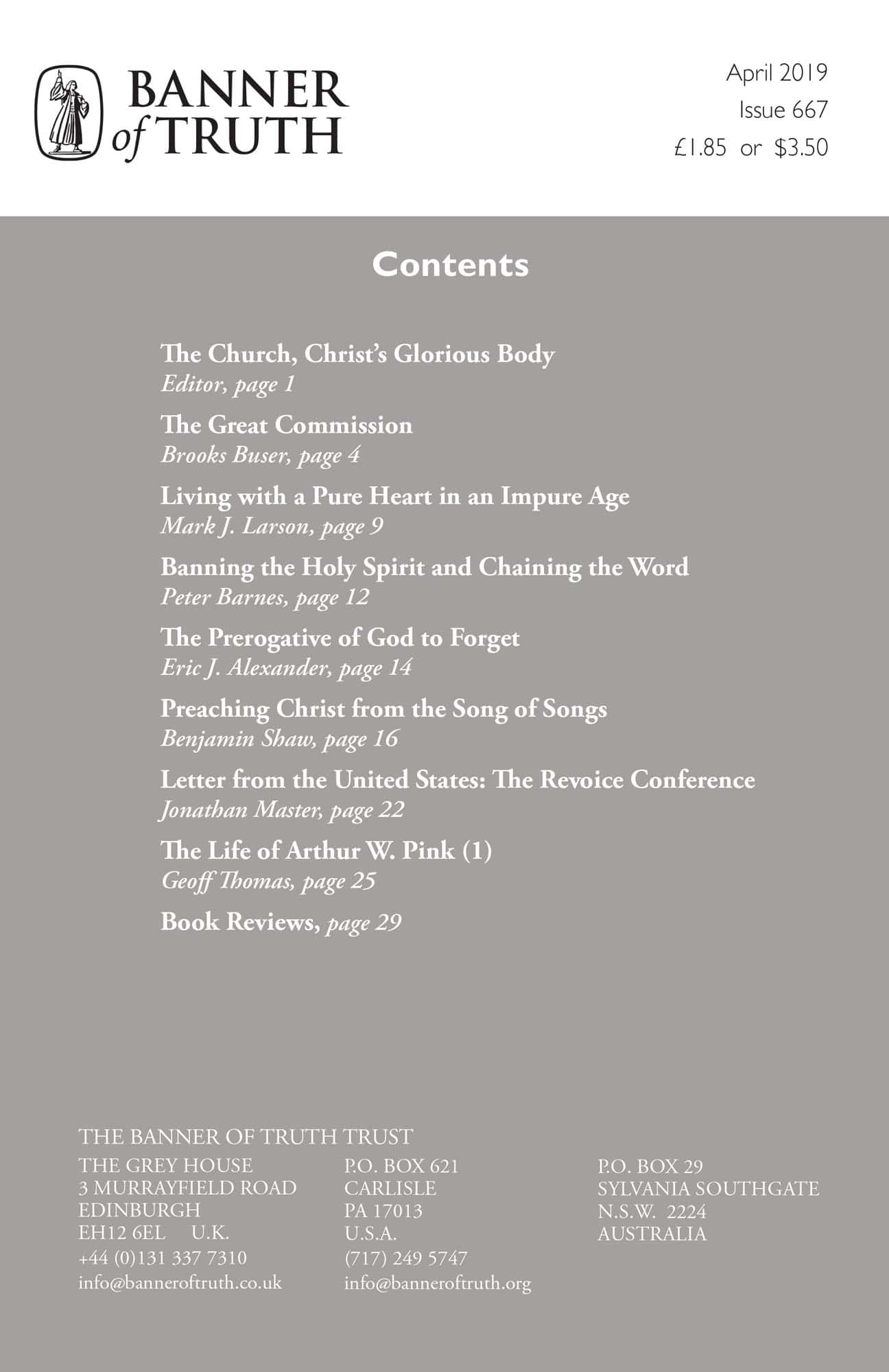 | The Life of Arthur W. Pink (1) — Thomas, Geoffrey | 25-29 |