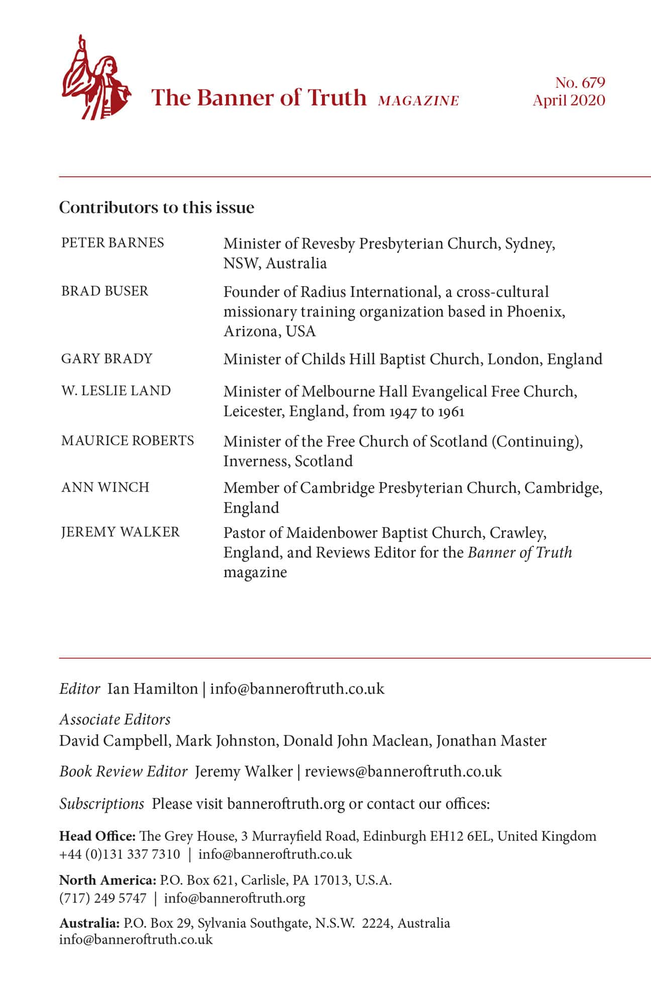 Subscribe to the Banner of Truth Magazine for 11 edifying issues each year (including summer double issue). Table of Contents Common Salvation (2) — Manton, Thomas 1 Patrick: Inspiration for the Mission of William Carey and his Friends — Haykin, Michael A G 5-8 Gethsemane and the Covenant of Redemption — Alexander, Eric J 8-12 […]