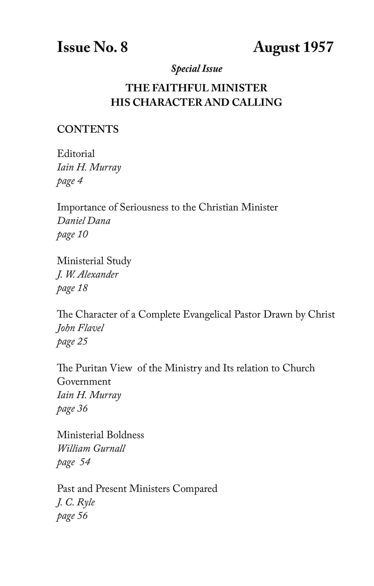 | Puritan View of the Ministry and its Relation to Church Government — Murray, Iain H | 24-34 |