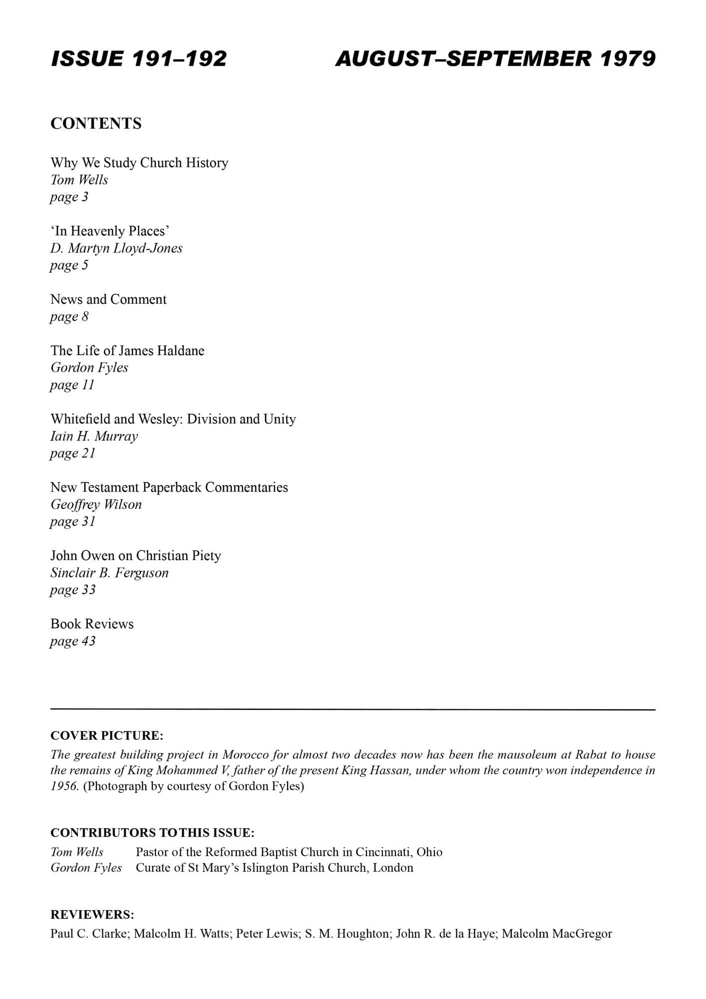 | George Whitefield and John Wesley: Division and Unity in the Evangelical Revival — Murray, Iain H | 29-44 |