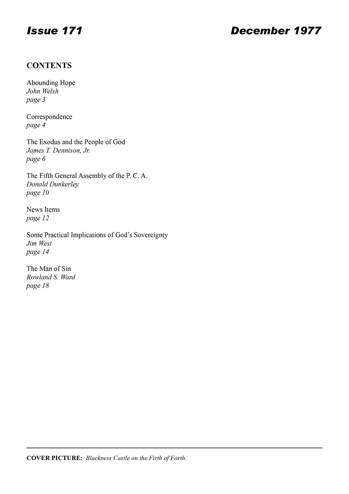 | Fifth General Assembly of the Presbyterian Church in America 1977 — Dunkerley, Donald A | 12-15 17 |