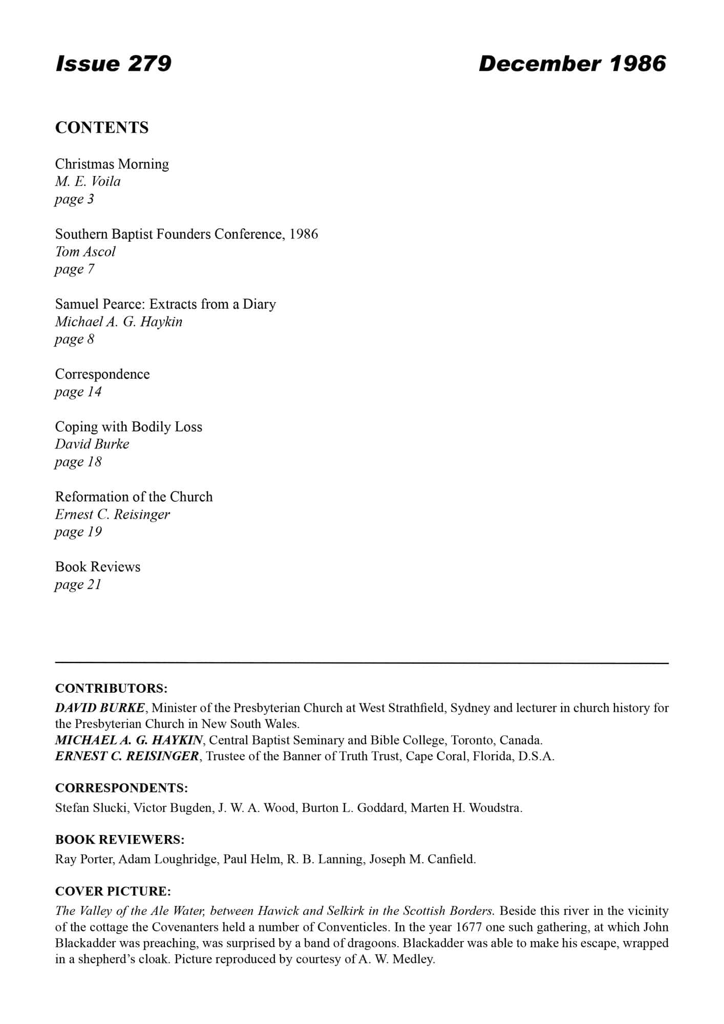| Samuel Pearce Extracts from a diary: Calvinistic Baptist Spirituality in the Eighteenth Century — Haykin, Michael A G | 9-18 |