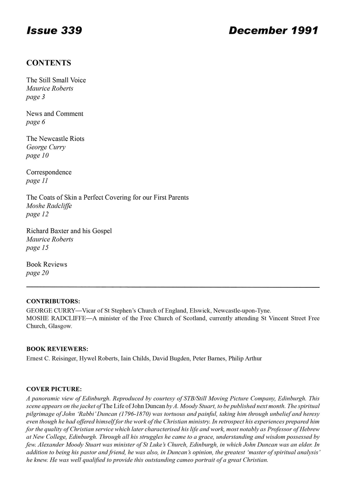 | Coats of Skin a Perfect Covering for our First Parents — Radcliffe, Moshe | 14-18 |