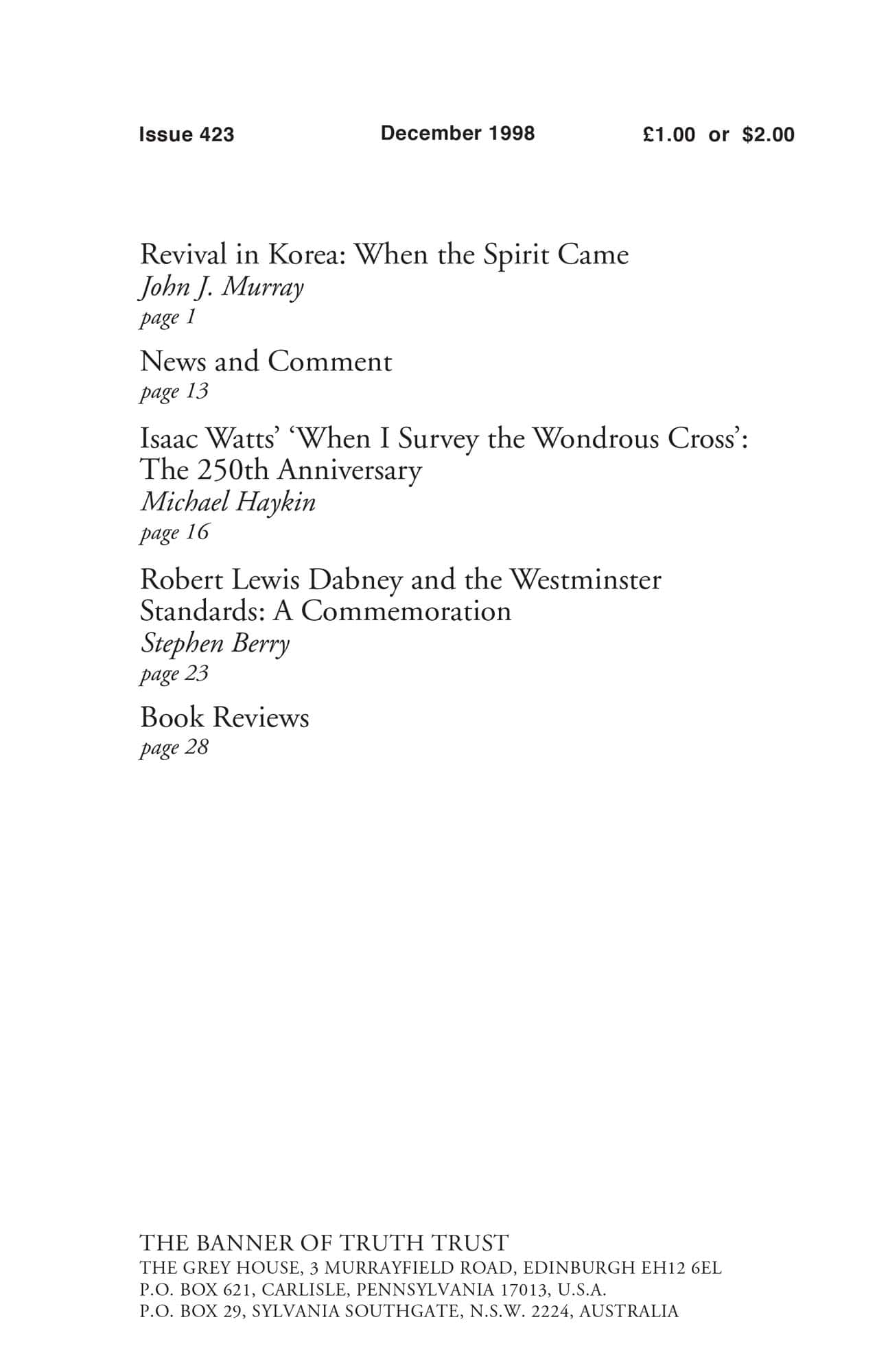 Subscribe to the Banner of Truth Magazine for 11 edifying issues each year (including summer double issue).