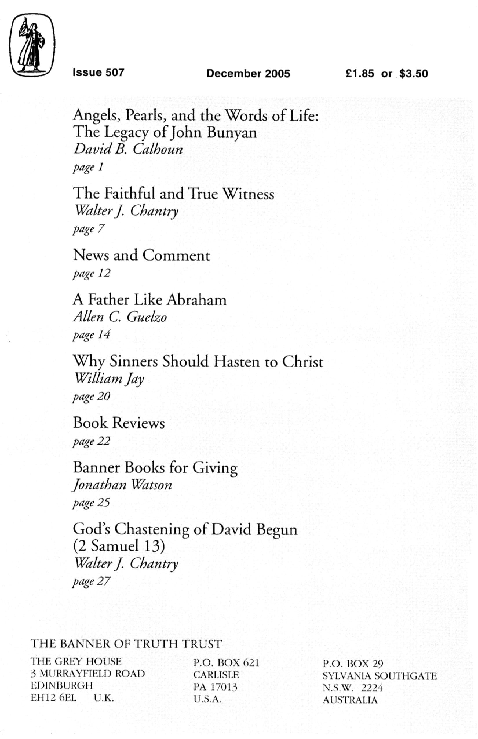 | Angels, Pearls, and the Words of Life: The Legacy of John Bunyan — Calhoun, David B | 1-6 |
