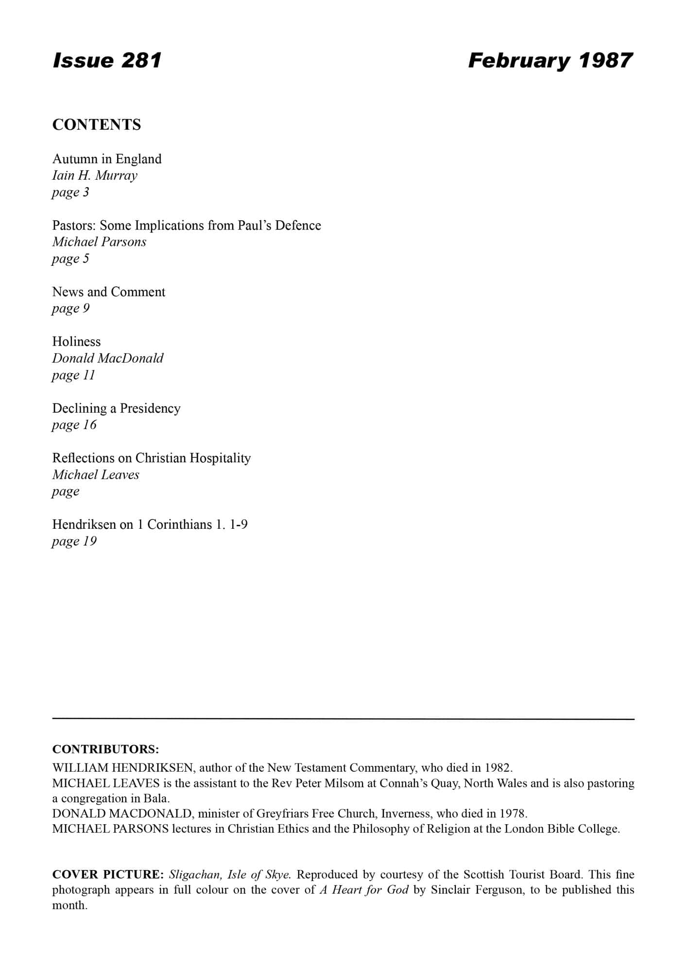 | Reflections on Christian Hospitality based upon Acts 18.24-28 — Leaves, Michael | 24-26 |