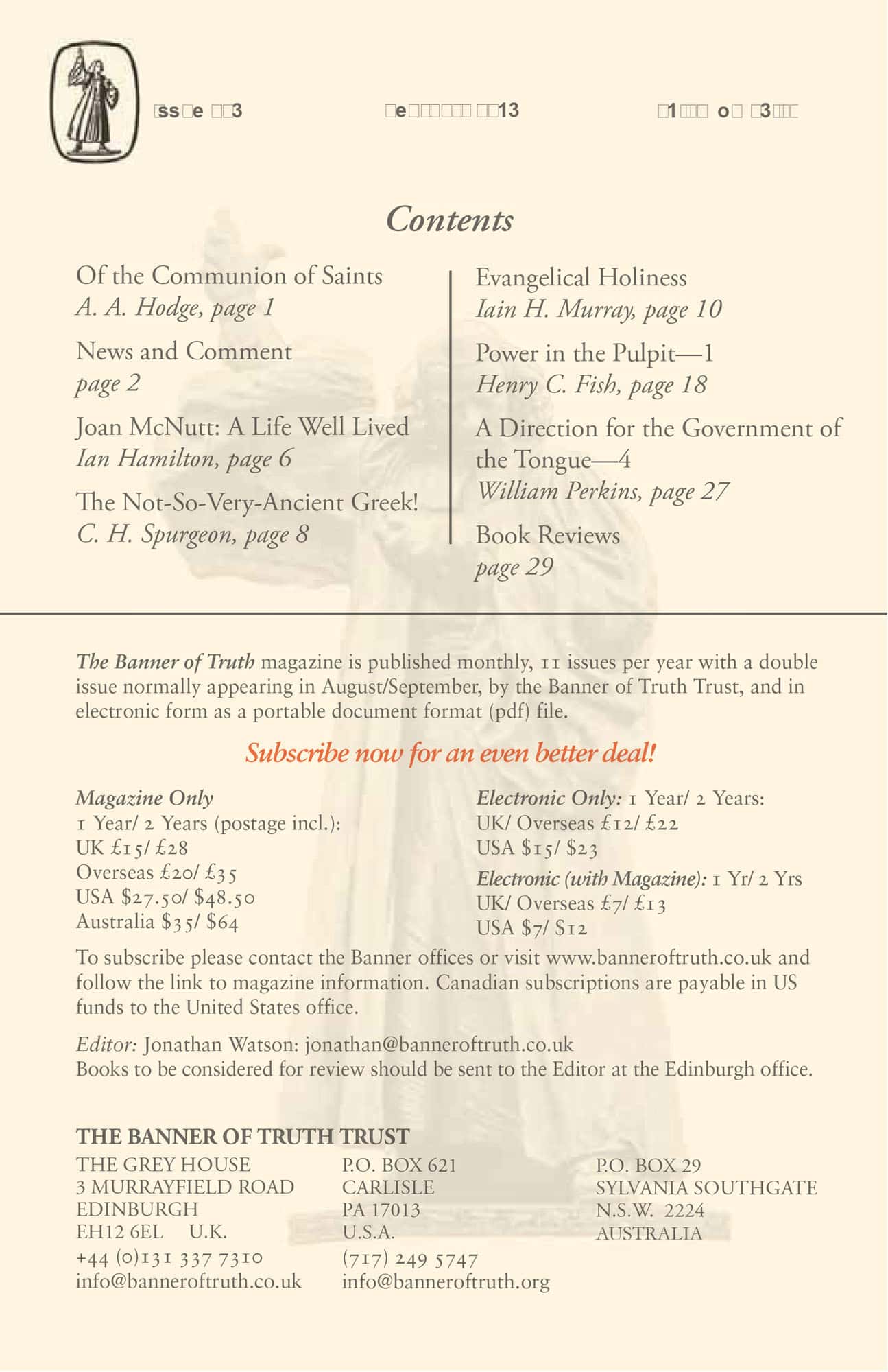 Subscribe to the Banner of Truth Magazine for 11 edifying issues each year (including summer double issue).