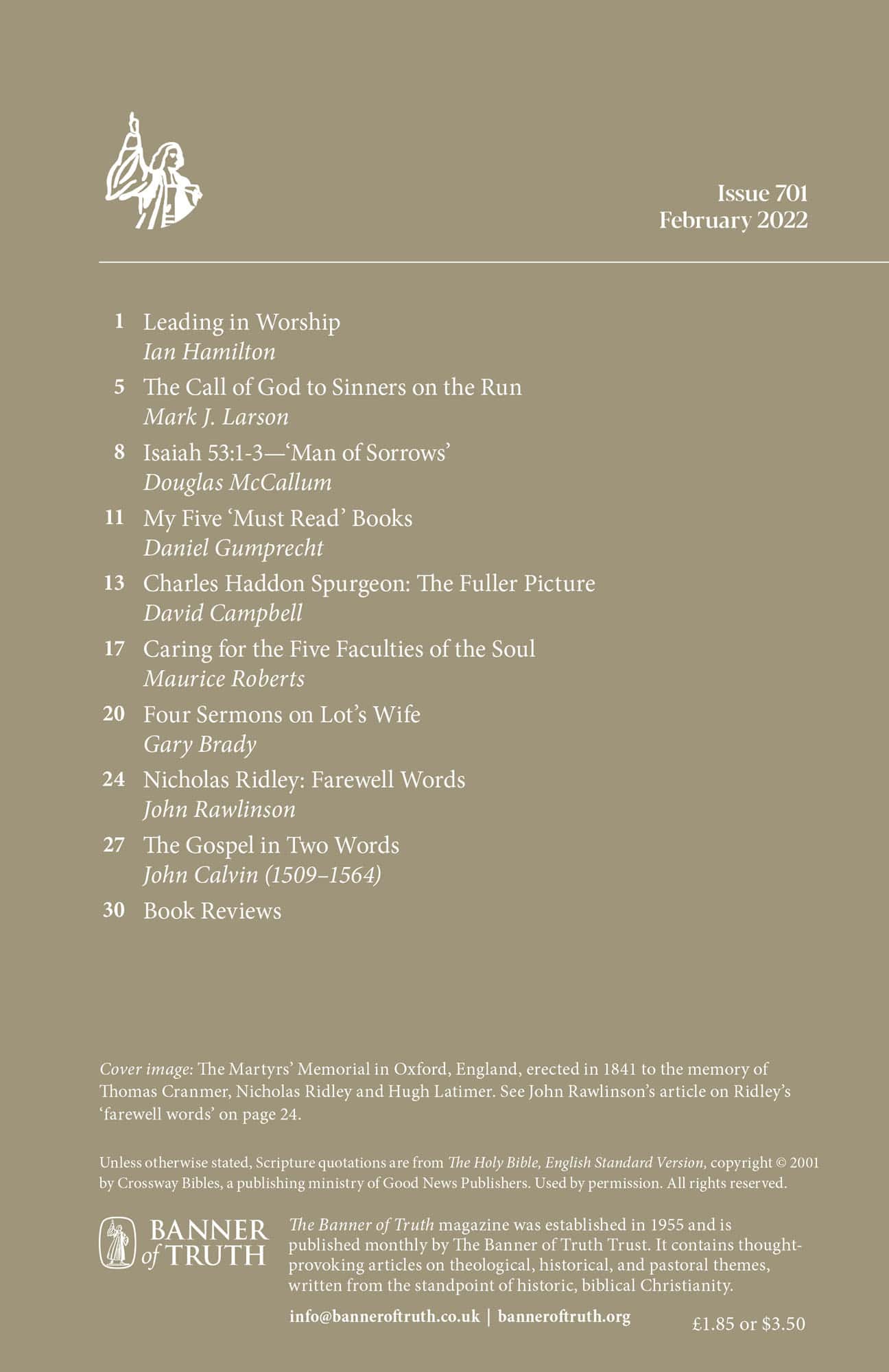 Subscribe to the Banner of Truth Magazine for 11 edifying issues each year (including summer double issue).